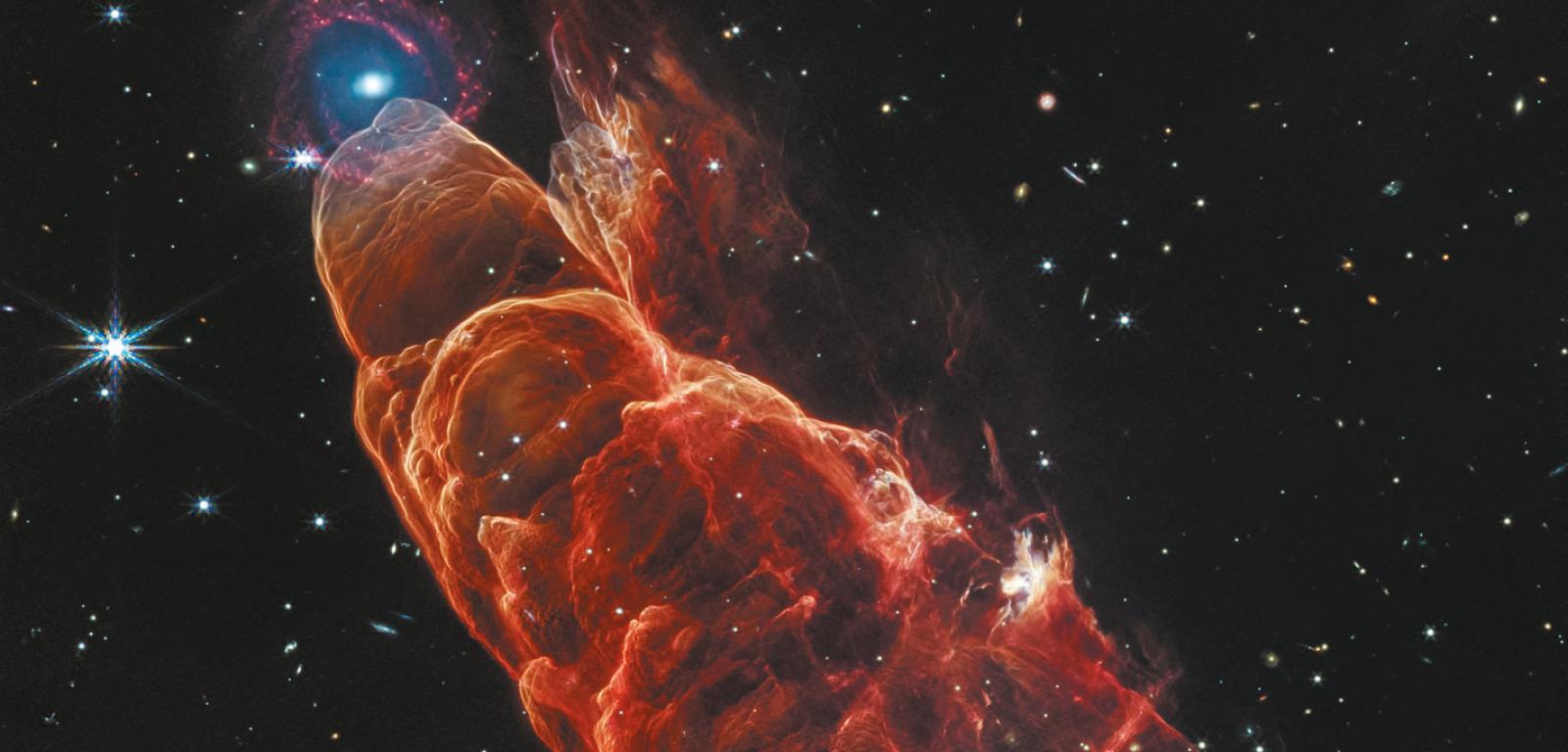 Kiedy rodzi się gwiazda, pozostawia po sobie lawinę wysokoenergetycznego gazu, pyłu i innych śmieci kosmicznych. Część tych szczątków zlepia się ze sobą i tworzy planety. W ten sposób prawdopodobnie powstała Ziemia. Z kolei inne resztki dryfują jako meteory i pył kosmiczny, ale kiedy warunki są odpowiednie, potężne strumienie plazmy wylatujące z młodej gwiazdy ubijają część odpadków w przypominającą kłęby dymu spiralną wieżę z kosmicznego pyłu. Jedną z nich możemy teraz obejrzeć lepiej niż kiedykolwiek wcześniej dzięki teleskopowi Jamesa Webba.