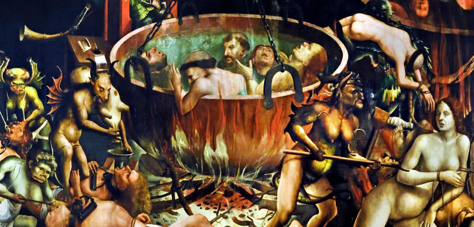 Przejmujące obrazy mąk piekielnych i strasznego losu potępionych grzeszników w zaświatach ludzka wyobraźnia zaczęła produkować już w pierwszych wiekach chrześcijaństwa. Zapełniały one papirusowe zwoje apokryfów, czyli takich nieco „odjechanych” ksiąg, których dziś nie znajdziecie w oficjalnym kanonie Pisma Świętego. Opis piekła w pochodzącej z II w. Apokalipsie Piotra to np. prawdziwy horror. Czarne powietrze, czarne szaty potępieńców, czarne szaty aniołów-katów, w dole jezioro wypełnione gorejącym błotem, a nad nim bluźniercy zawieszeni za języki, grzeszne kobiety wiszące za włosy, zabójcy skręceni w męczarniach, pokryci cali robactwem, dręczeni przez okrutne jaszczury. W późniejszej o ponad sto lat Apokalipsie Pawła tysiąc dusz grzeszników przyczepionych do ognistego koła obraca się na wietrze tysiąc razy w ciągu dnia, a lichwiarze pożerają własne języki. To ludowe piekło pierwszych chrześcijan lubowało się w wymyślaniu coraz to okrutniejszych rodzajów odwetu na możnych tego świata – chciwych wydrwigroszach, skąpcach, żarłokach, rozpustnikach, próżniakach, wyniosłych i nadętych smutasach, nieznośnych luzaczkach.