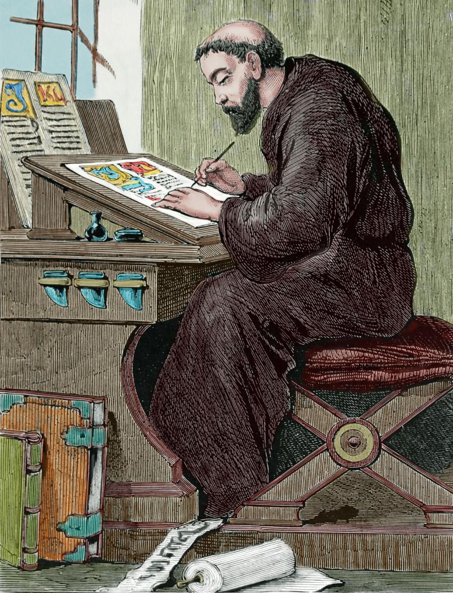 W Marcinowym klasztorze młodzi adepci spędzali czas na przepisywaniu ksiąg, a więc na „benedyktyńskiej pracy”. Tyle, że Marcin nie zostawił żadnej reguły, jakiejś trwalszej organizacji i po jego śmierci w 397 r. wszystko się rozpadło. Prawie wszystko. Kopiowanie i studiowanie ksiąg zalecał półtora wieku później Kasjodor, rzymski arystokrata, który sekretarzował na dworze ostrogockiego monarchy Teodoryka Wielkiego, a potem w swych posiadłościach założył klasztor Vivarium. Tam napawał się widokiem „zwinnych palców kopiujących niebiańskie słowa”.