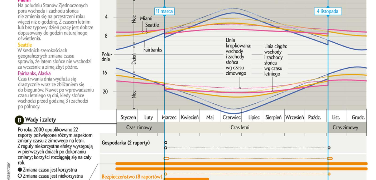 Sto lat temu w Stanach Zjednoczonych zainicjowano powtarzany dwa razy w ciągu roku rytuał zmiany czasu, z zimowego na letni i odwrotnie. Obecnie procedura odbywa się w przeszło 70 państwach na świecie. Szczegóły jej przeprowadzania bywają różne, ale idea sprowadza się do przesunięcia wiosną wskazówek zegara o godzinę do przodu, aby «opóźnić» wschody i zachody słońca w stosunku do typowych godzin pracy. Od samego początku trwa spór zagorzałych zwolenników i przeciwników tej operacji.