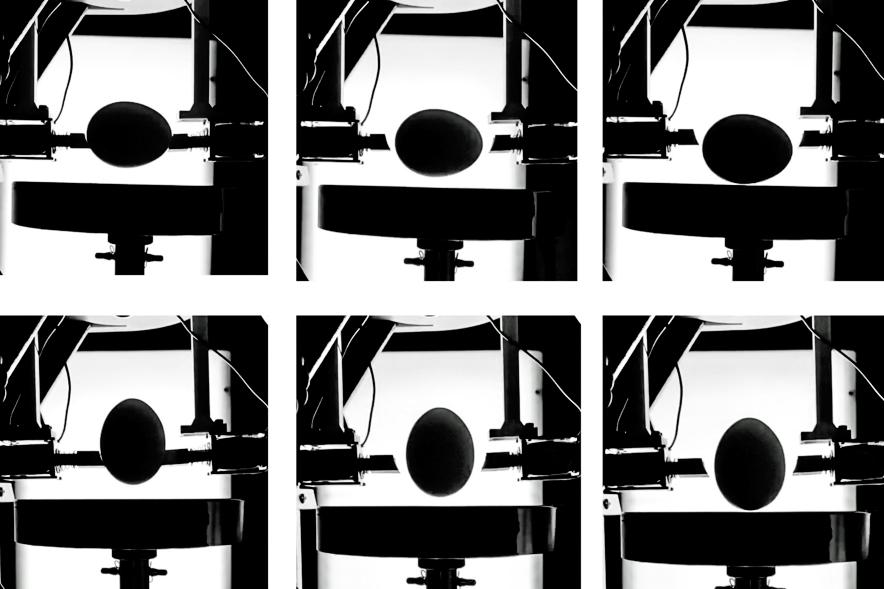 W serii eksperymentów badacze wykazali, że jajko rzadziej ulega uszkodzeniu, spadając na bok. Skorupka to cud inżynierii i działa jak amortyzator: zamiast pękać, ugina się i pochłania energię uderzenia.