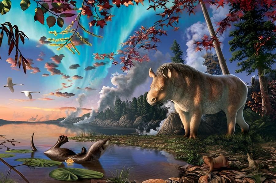 Wyjątkowo dobrze zachowaną skamieniałość (aż 75 proc. szkieletu) nowo odkrytego gatunku Epiaceratherium itjilik (epitet gatunkowy oznacza w języku Inuktitut „mroźny”) odkryli na Arktyce naukowcy i opisali w „Nature Ecology & Evolution”. Oczywiście, w czasach, w których te zwierzęta chodziły po świecie, czyli ok. 23 mln lat temu, tereny, na których odnaleziono skamieniałe szczątki, były znacznie cieplejsze niż współcześnie. Na wyspie Devon (Nunavut, Kanada) panował klimat umiarkowany. Było to leśne, zielone środowisko, w którym niewielki, zbliżony rozmiarem do współczesnych nosorożców indyjskich, roślinożerca, miał dostęp do wystarczającej ilości pokarmu. E. itjilik żył na terenach najbardziej wysuniętych na północ ze wszystkich znanych gatunków nosorożców. (mat) Ilustracja: Julius Csotonyi