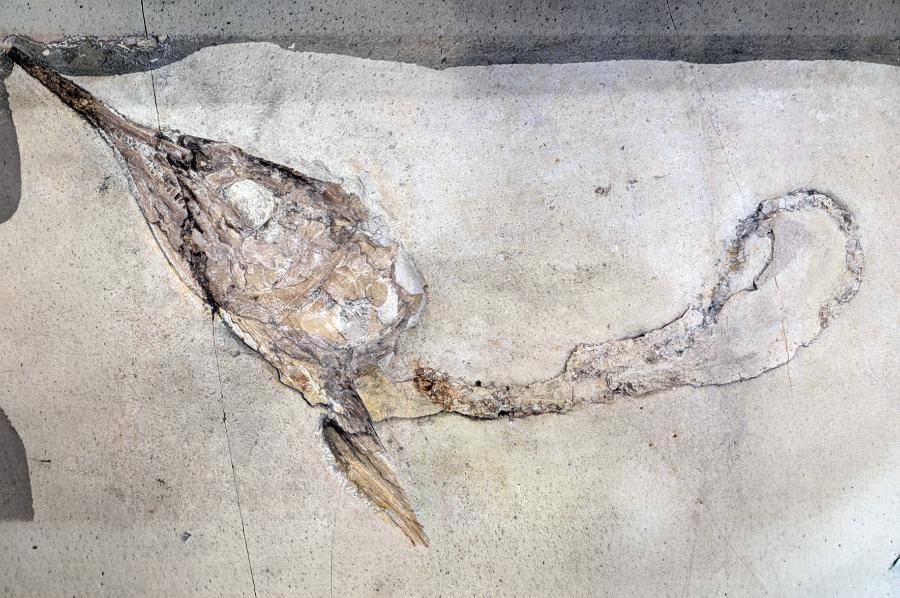 Ponad 150 mln lat temu w wodach Solnhofen żył szybki Aspidorhynchus – metrowa ryba o długim, ostrym pysku przypominającym dzisiejsze marliny. W skałach najczęściej znajdujemy po nim nie całe szkielety, lecz odgryzione głowy z przyczepionymi jelitami. To ślady po ucztach większych morskich potworów, a świadczą o tym charakterystyczne uszkodzenia. Ich układ przypomina skutki ataku współczesnych drapieżnych ryb, które szarpią zdobycz gwałtownymi ruchami – w takich momentach czaszka odrywa się dokładnie w miejscu naturalnego „słabego połączenia” między głową a pierwszym kręgiem. W tamtej epoce z tak dużymi ofiarami mogły poradzić sobie wyłącznie spore rekiny i ichtiozaury. Wewnątrz niektórych okazów zachowała się również zawartość żołądka – małe rybki, często już nadtrawione, znaleziono nawet młodocianego skorupiaka Knebelia schuberti. (ji)