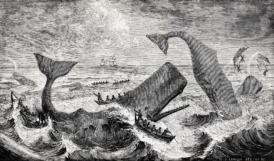 Ilustracja: Atak kaszalotów na łodzie rybackie, Thomas Beale (1807–1849)