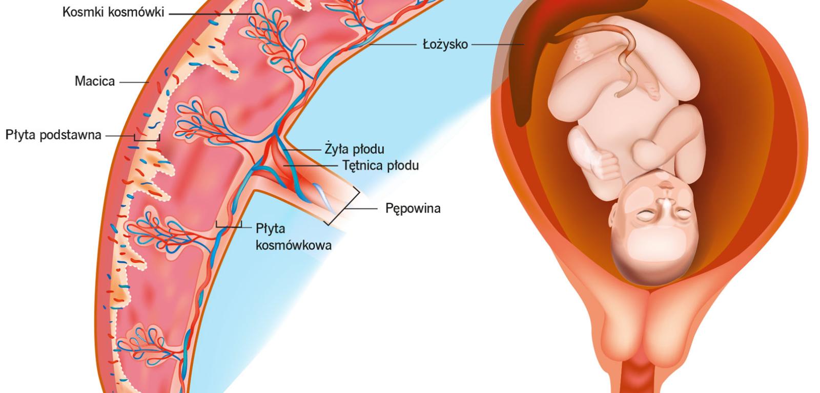 Zanim skończy się pierwszy trymestr ciąży, tętnice otwierają się do przestrzeni między kosmkami kosmówki i uwalniają duże ilości krwi, a wraz z nią tlen oraz składniki odżywcze. Jest to niezbędne do prawidłowego rozwoju zarodka. To jednak nie wszystko. Komórki cytotrofoblastu przedostają się także do żył macicy, pozwalając na powrót krwi z łożyska do organizmu matki, a więc powstaje tym samym obieg zamknięty.