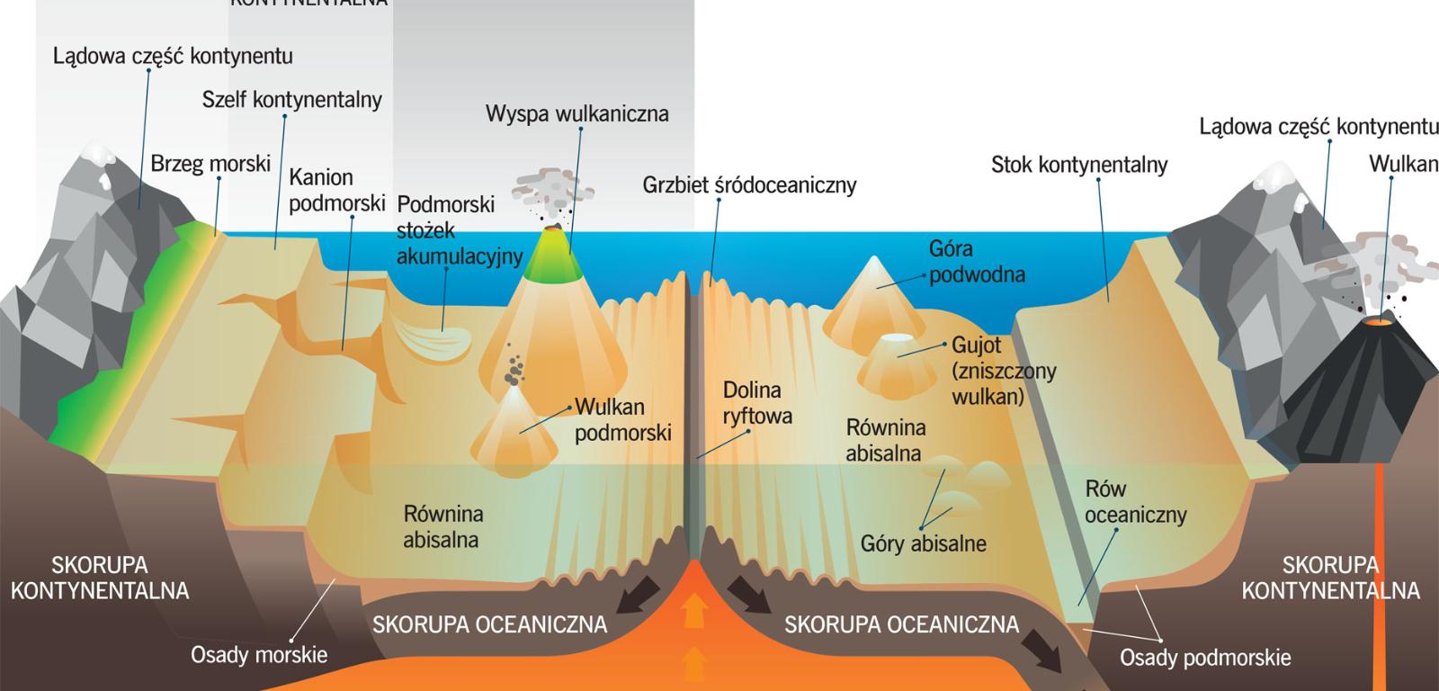 Uogólniając, można powiedzieć, że skorupa kontynentalna to lekkie granity wypychane ku górze, a skorupa oceaniczna to cięższe bazalty formujące obniżenia wypełnione wodą, czyli baseny oceaniczne. Dodajmy jeszcze, że raz powstała skorupa granitowa nie daje się już tak łatwo unicestwić i czasami osiąga wiek godny podziwu – najstarsze znane jej fragmenty liczą ponad 4 mld lat; tymczasem skorupa bazaltowa jest nieustannie odmładzana, a jej wiek nie przekracza 200 mln lat.