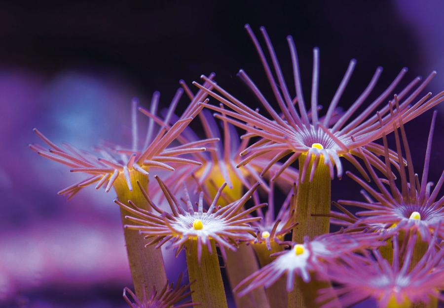 Koralowce swoim wyglądem bardziej przypominają rośliny niż zwierzęta (co oddaje ich łacińska nazwa Anthozoa, czyli „kwiatozwierz”). Za ich fantazyjne ubarwienie odpowiadają glony, z którymi żyją w symbiozie już od ponad 212 mln lat. Wbudowane w komórki koralowca glony nie tylko zyskują azyl, ale też mają z tego układu bardziej wymierne pożytki: azot, fosfor i dwutlenek węgla niezbędny do przeprowadzenia fotosyntezy. W zamian dostarczają koralowcom aż 90% składników energetycznych (cukry) i tlen. Dzięki obecności symbiontów koralowce znacznie szybciej budują wapienny szkielet.
