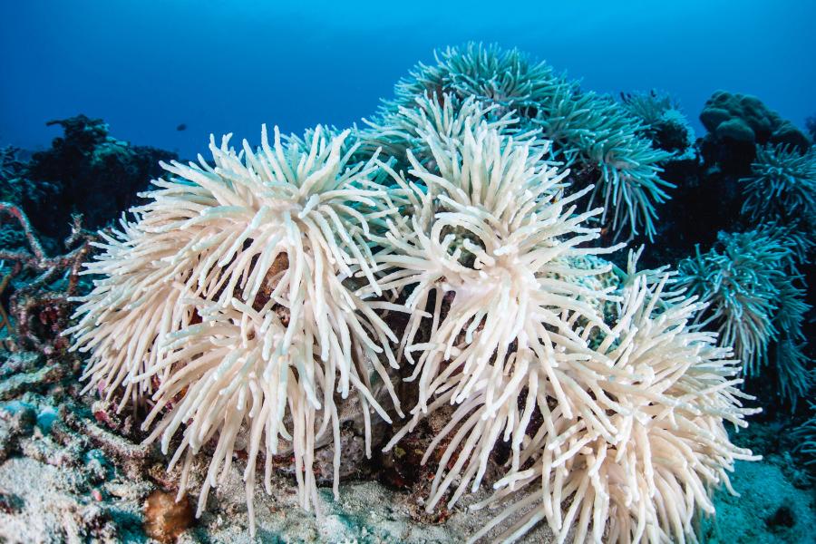 Dwutlenek węgla należy do grupy tzw. gazów cieplarnianych, przez które temperatura na Ziemi stale rośnie. Ciągły wzrost jego stężenia w powietrzu odnotowuje się od czasów rewolucji przemysłowej. Winne są spalanie gazu ziemnego, ropy naftowej i węgla. Niestety, CO2 trafia też do oceanicznych wód – zwiększa ich kwasowość i obniża pH. W takich warunkach koralowce mają problemy z pobieraniem z wody węglanu wapnia i tym samym tworzeniem wapiennych szkieletów. Szacuje się, że do tej pory wody oceanów pochłonęły aż jedną trzecią wyprodukowanego przez ludzi CO2.