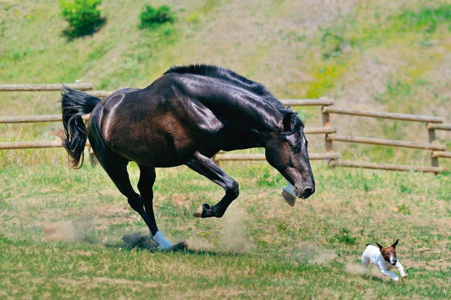 Co ciekawe, zależność formy zabawy od płci zaobserwowano też u koni. Młode osobniki początkowo spędzają czas w bardzo podobny sposób. Brykają po pastwisku, przenoszą w pysku różnorakie przedmioty i zaczepnie podgryzają matkę. Ale wraz z upływem czasu zabawa wśród klaczy i ogierów zaczyna się zmieniać. Po miesiącu samce bawią się w walki z innymi osobnikami, podczas gdy samice spędzają czas na pielęgnacji sierści i spokojnych pokojowych interakcjach społecznych.