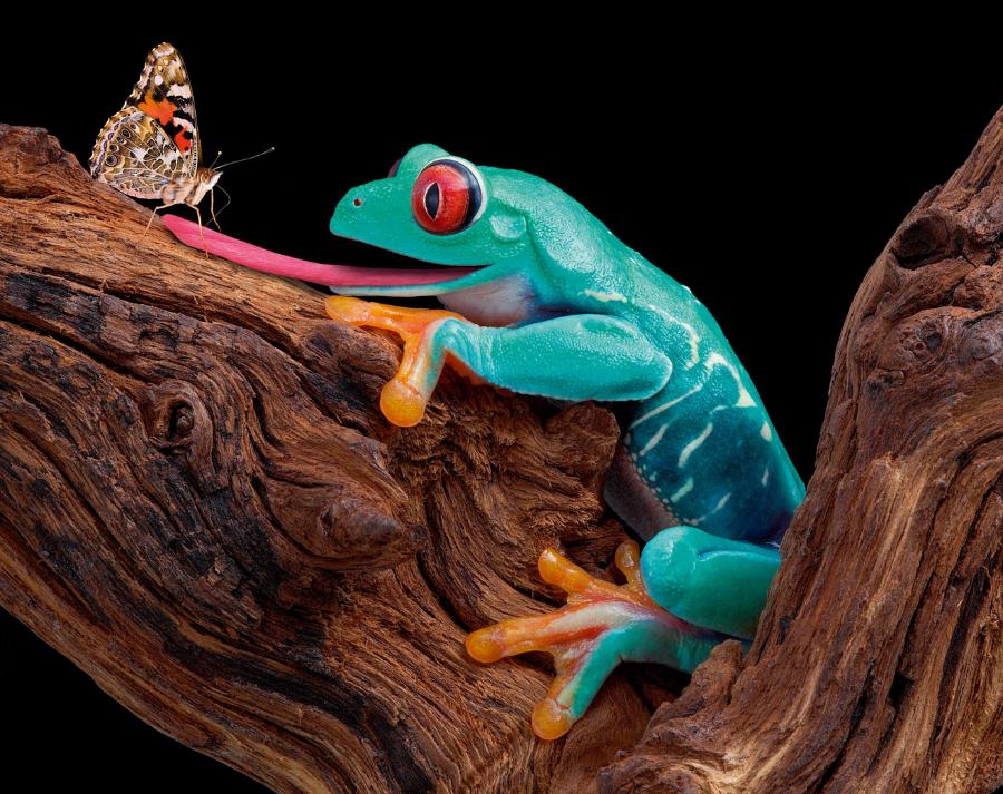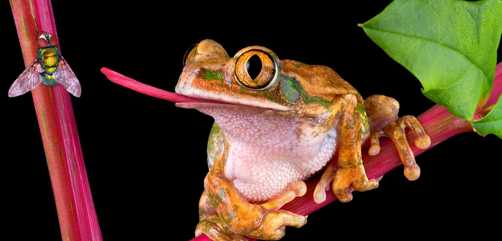 Żaby, a więc przedstawiciele płazów, natura również uczyniła bezzębnymi. Mają za to długi silny język. Pokrywa go niezwykle lepki śluz służący do chwytania ofiar, głównie owadów i dżdżownic. Wyjątkowo silnym językiem pochwalić się może żyjąca w Ameryce Południowej żaba rogata. Ten żarłoczny płaz na swoje ofiary czyha w ukryciu, częściowo zakopany w ziemi. Gdy tylko zobaczy potencjalną zdobycz, z zawrotną szybkością (milisekundy) wyrzuca język i w nią uderza. Badania wykazały, że językiem byłaby w stanie przyciągnąć obiekt nawet trzykrotnie od niej cięższy. Ciekawym językiem może pochwalić się też występująca w Polsce żaba wodna. Nie reaguje on bowiem na ukąszenia jej smakołyku – pszczół miodnych. Płazy te często mają wbite w języki nawet po kilka żądeł. Prawdziwym dziwakiem jest też żaba szponiasta, która języka w ogóle nie posiada, a w pobieraniu pokarmu pomaga sobie palcami przednich łapek. Kiedyś żeńskie osobniki tego gatunku wykorzystywano jako żywy test ciążowy. W tym celu żabom wstrzykiwano odrobinę kobiecego moczu. Jeśli kobieta była w ciąży, żaba w ciągu doby zaczynała produkcję własnych jaj.