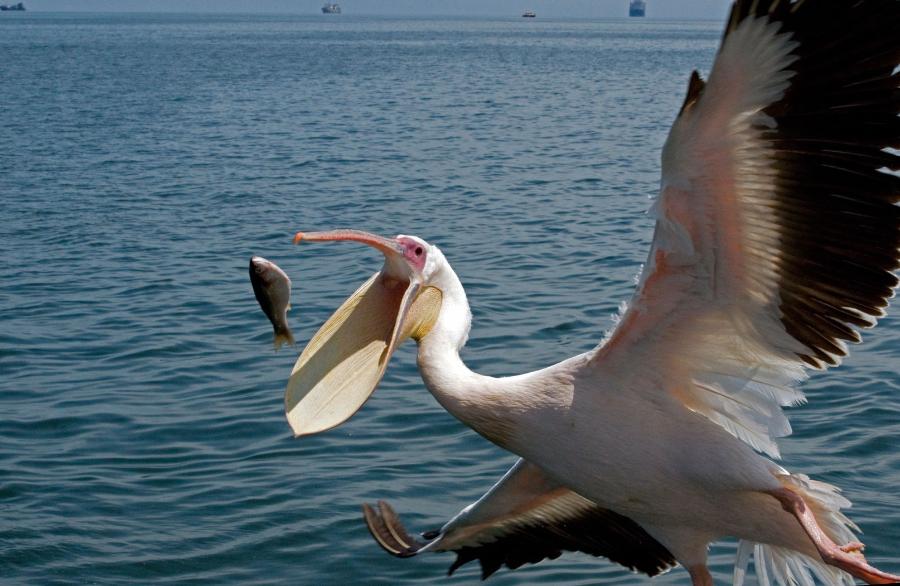 Pelikany to ptaki drapieżne, których główne pożywienie stanowią ryby i skorupiaki. W trakcie polowania zanurzają głowę w wodzie i olbrzymim dziobem chwytają ryby. Te trafiają do dużego worka skórnego, znajdującego się bezpośrednio pod dziobem. W tym magazynie jedzenie nie przebywa długo. Ptaki odlatują w bezpieczne miejsce i od razu połykają ofiarę. Worek pelikana może też służyć jako zbiornik na nadającą się do picia wodę deszczową.