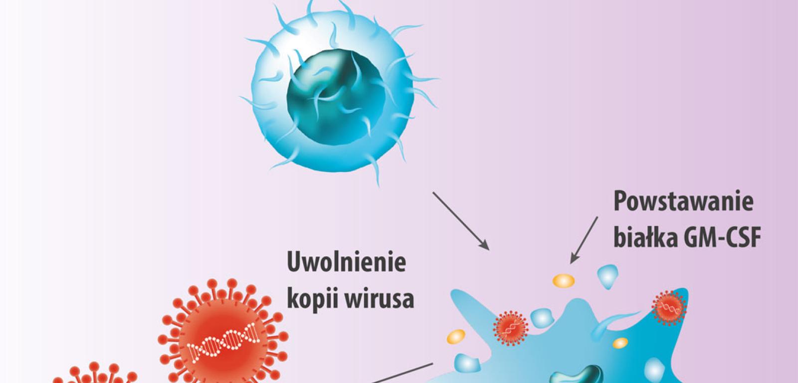 Całkiem niedawno za to amerykańska Agencja Żywności i Leków (FDA) dopuściła stosowanie w terapii pacjentów z czerniakiem zmodyfikowanego wirusa opryszczki – Talimogene laherparepvec. Dzięki metodom inżynierii genetycznej pozbawiono go genów odpowiedzialnych za rozwój choroby. Zamiast tego otrzymał gen kodujący białko GM-CSF, które nie tylko bezpośrednio uśmierca komórki nowotworu, ale jest sygnałem przyciągającym w okolicę guza limfocyty T, a te pomagają go unieszkodliwić. Niestety terapia taka to koszt ok. 65 tys. dol.