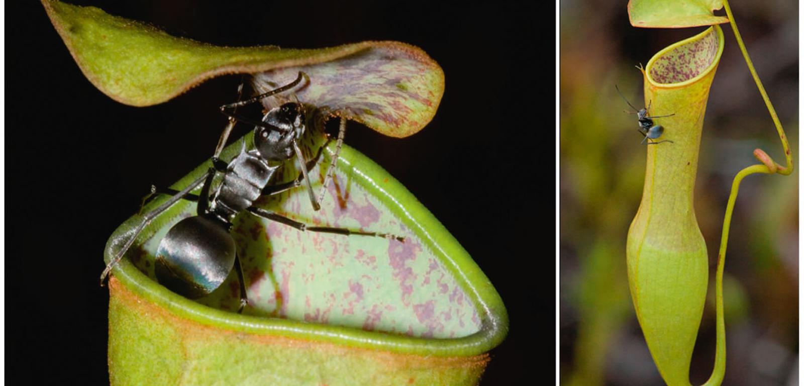 Prawdziwym strategiem jest również dzbanecznik Nepenthes gracilis, wykorzystujący krople deszczu do polowania na mrówki. Oszukiwanie owadów nic go nie kosztuje, nie zużywa do tego własnej energii, jedynie siłę spadającej kropli. Kiedy dzbanecznik wyczuwa padający deszcz, wydziela niebywale słodki, atrakcyjny dla owadów nektar. Nieświadome zagrożenia mrówki wędrują w okolicę dzbana, który po uderzeniu w niego kropli wody zaczyna wibrować, co sprawia, że ofiary wpadają do jego wnętrza. Dzban się zamyka, a uwięzione owady zostają poddane wpływowi soków trawiennych.