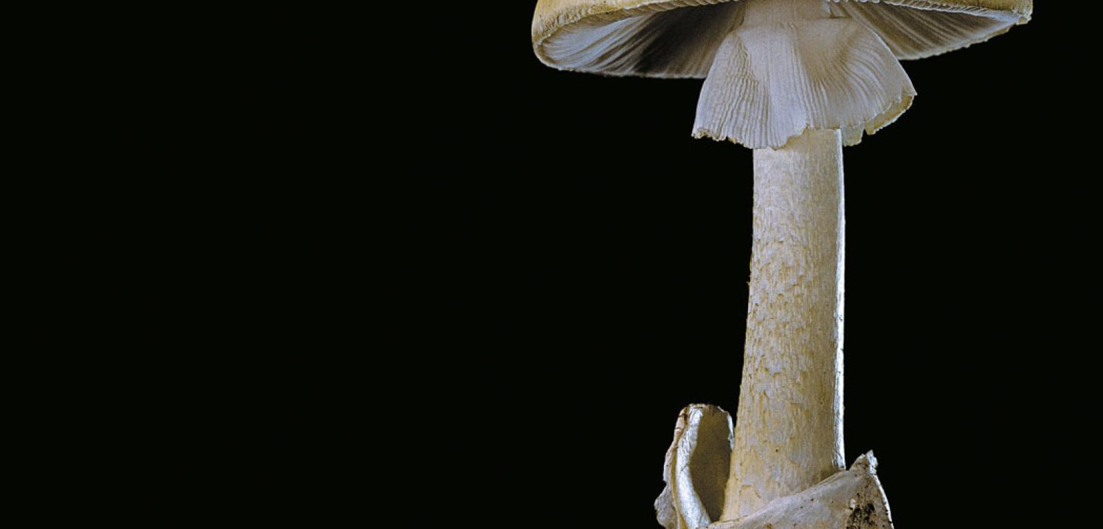 wyłaniającego się ze ściółki muchomora