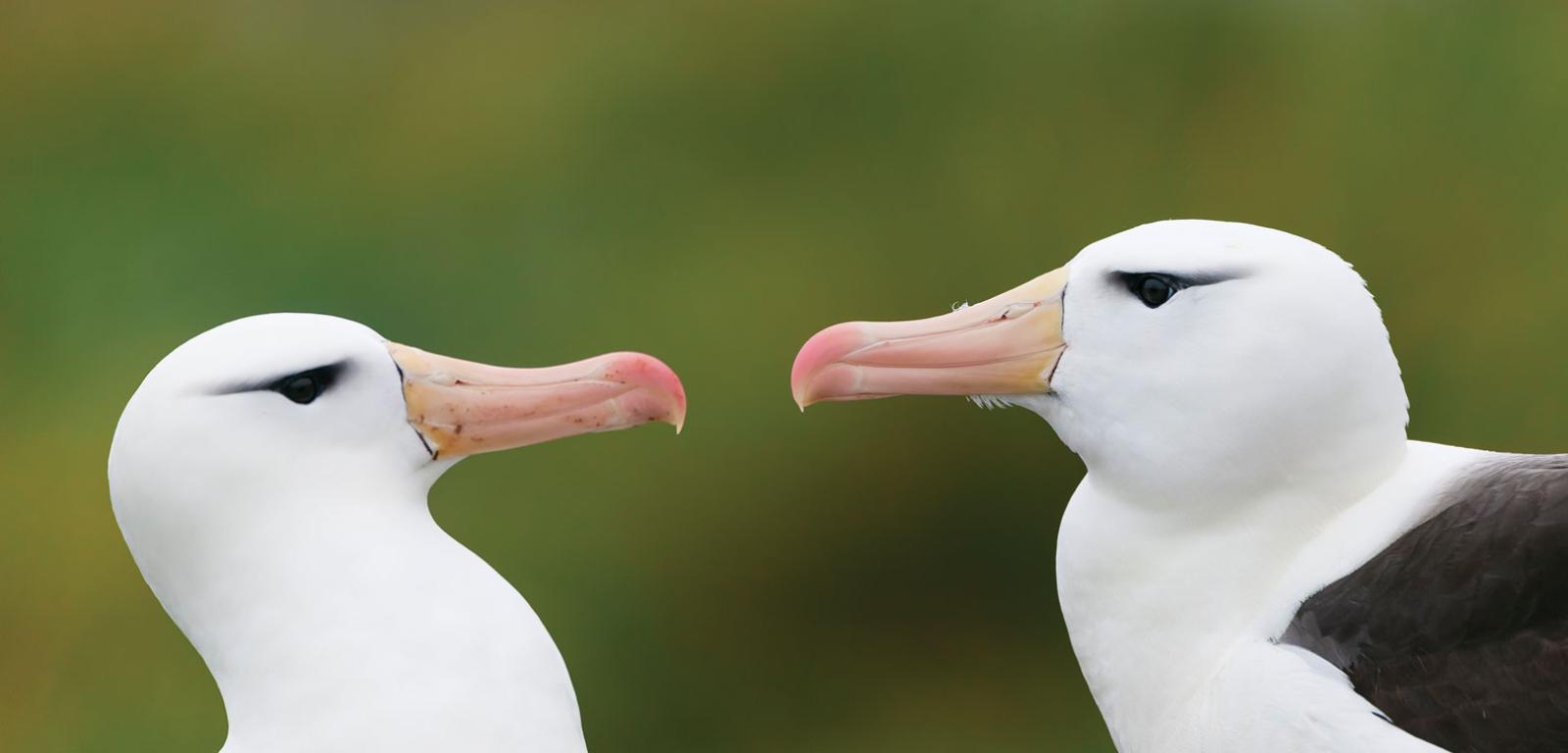 Niewiele zwierząt jest tak uczuciowych, jak albatros czarnobrewy. Ten wielki ptak morski z charakterystyczną ciemną oprawą oczu, jakby miał zrobiony makijaż, jest monogamiczny i często łączy się w pary na całe życie. Takie romantyczne „małżeństwa” mają praktyczne uzasadnienie: pozostawanie z tym samym partnerem buduje zaufanie niezbędne wtedy, gdy partnerzy na zmianę albo wysiadują jaja, albo wyruszają na długie polowania.