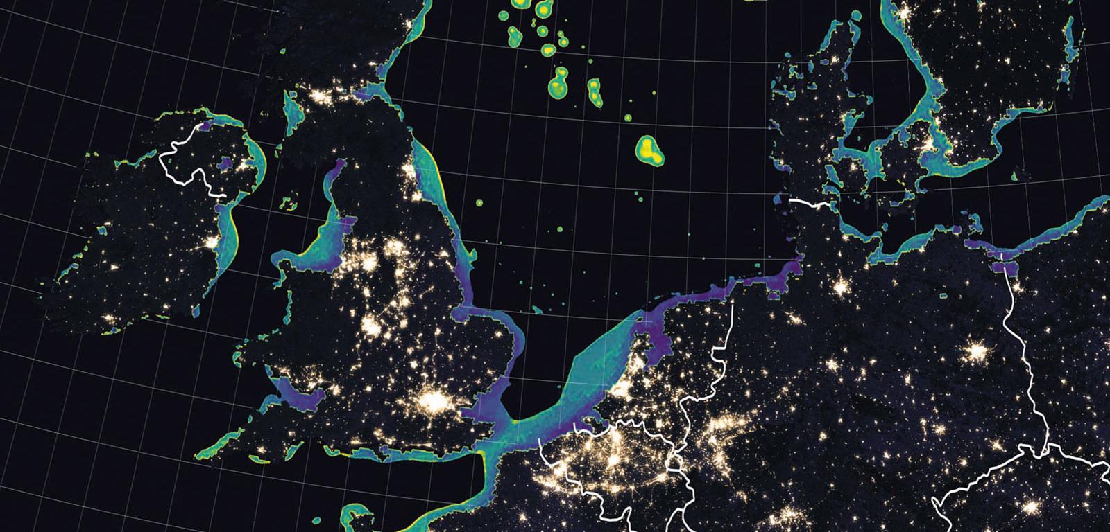 Widać tę ingerencję doskonale na zdjęciach satelitarnych ukazujących powierzchnię mórz w porze nocnej. Biolog morski Tim Smyth z Plymouth Marine Laboratory w Wielkiej Brytanii przejrzał tysiące takich fotografii z lat 1998–2017, a po ich przeanalizowaniu stworzył pierwszy atlas nocnych wód. Nie wszystkich oczywiście, ale wybranych, najsilniej zanieczyszczonych sztucznym światłem. Wśród nich jest Morze Północne, na którego brzegach mieszkają dziesiątki milionów ludzi, co sprawia, że np. w powierzchniowych wodach Cieśniny Kaletańskiej, oddzielającej Wielką Brytanię od Europy, bardzo rzadko zapadają prawdziwe ciemności.