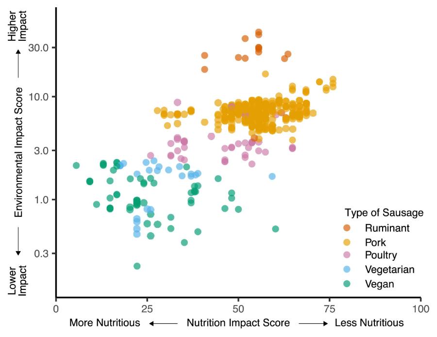 Ostatnim krokiem było zestawienie „ceny ekologicznej” z Nutri-Score, czyli etykietą umieszczaną na żywności w krajach Unii Europejskiej, pokazującą na skali pięciu kolorów wartość żywieniową – czyli obecność najmniej i najbardziej pożądanych składników. W ten sposób badacze chcieli sprawdzić, czy dość wysoki koszt ekologiczny, np. sera, idzie w parze z dużą wartością żywieniową.