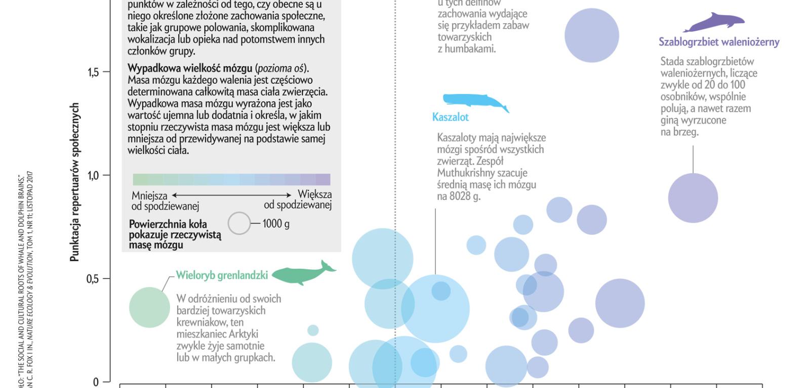 Złożone zachowania społeczne wielorybów i delfinów wiążą się z ich większymi mózgami