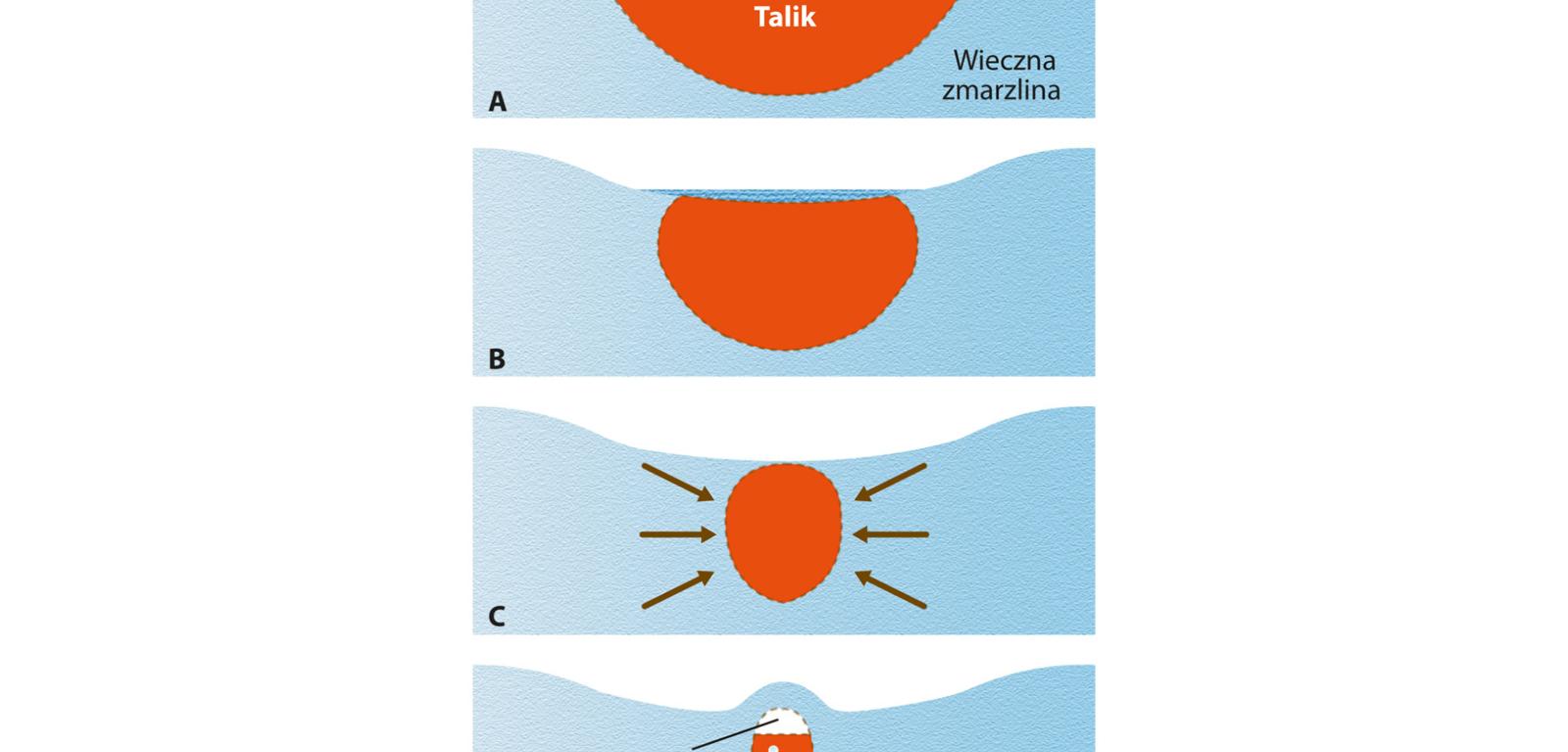 Pierwszą taką okrągłą dziurę wypatrzyły satelity na Półwyspie Jamalskim w Rosji. Było to w 2014 r. Natychmiast pojawiło się kilka hipotez na jej temat. Dla jednych był to krater powstały po upadku meteorytu, inni sądzili, że doszło do awarii podziemnej instalacji do wydobycia i transportu gazu ziemnego wydobywanego tu w olbrzymich ilościach. Obie teorie dość szybko upadły. Wtedy pojawiła się trzecia, według której dziura jest dziełem kriowulkanizmu, czyli wyrzucenia w powietrze wody pochodzącej z topnienia lodu.
