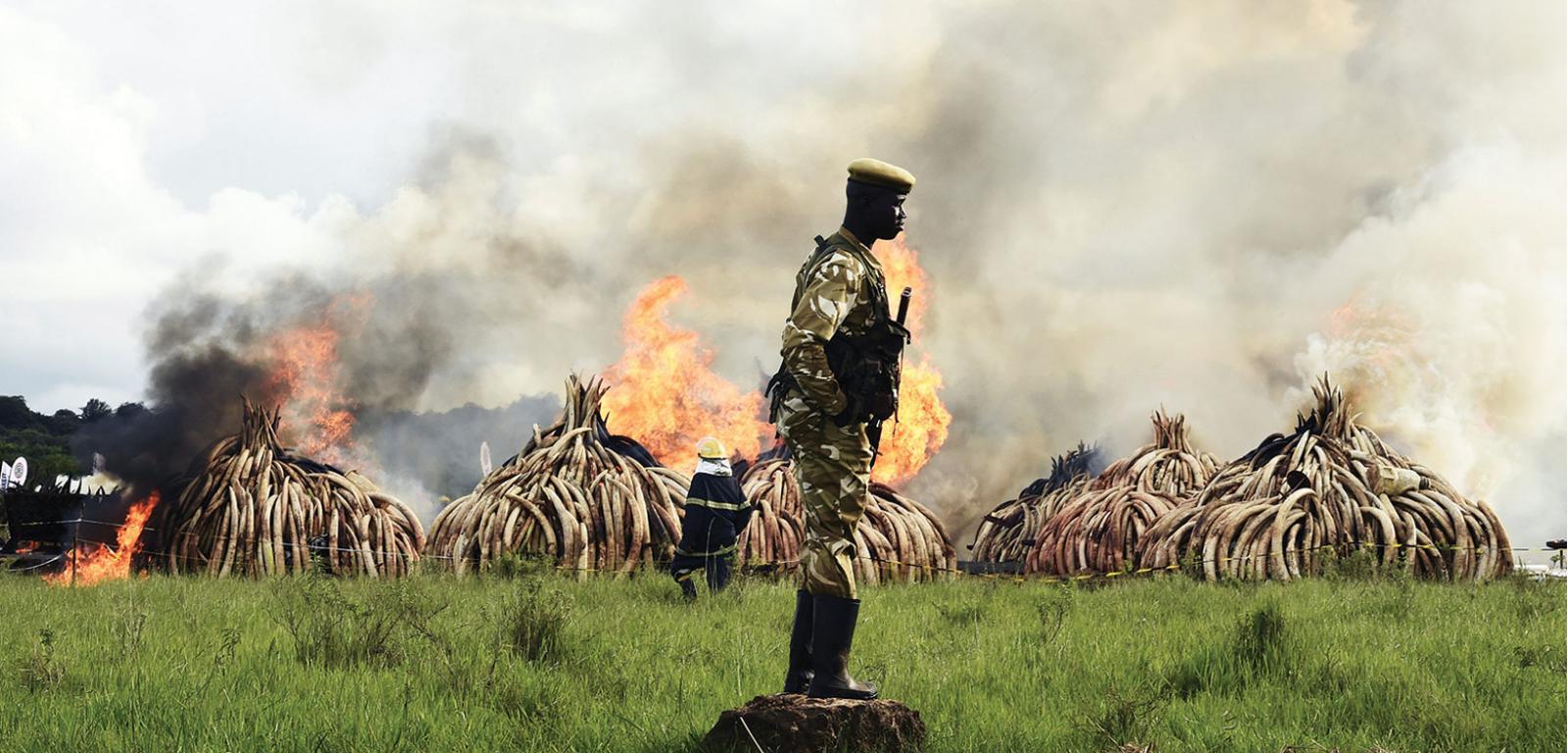 30 kwietnia 2016 roku prezydent Kenii Uhuru Kenyatta podłożył ogień pod gigantyczny stos skonfiskowanej w tym kraju kości słoniowej i rogów nosorożca. To był największy tego rodzaju spektakl w historii – płomienie strawiły 105 t kości słoniowej wartej około 100 mln dolarów oraz 1,3 mln ton rogów nosorożców wartych 67 mln dolarów. W pewnym sensie to wielkie ognisko było także pogrzebem urządzonym 6000 słoni oraz 300 nosorożcom zabitym przez kłusowników, aby dokonać kontrabandy. Co ważniejsze, ten sygnał dymny miał pokazać, że kość słoniowa i rogi nosorożców są cenne tylko wtedy, gdy znajdują się na głowach zwierząt zachwycających turystów i przede wszystkim odgrywających kluczową rolę w afrykańskich ekosystemach.