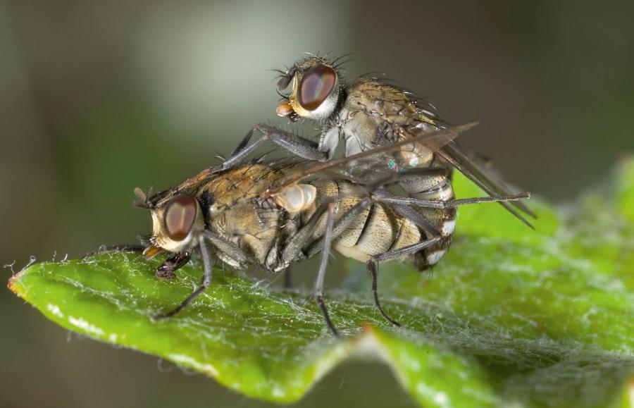 U owadów gorzej widzących niż ważki i motyle funkcja używania silnie połyskujących elementów ciała pozostaje niejasna, a epatowanie sygnałami wzrokowymi w celu przypodobania się samicom jest raczej rzadkie. Nasze rodzime muchówki z rodzaju Lispe można podejrzeć w słoneczne letnie dni, gdy uganiają się po wilgotnym piasku nad brzegami rzek i jezior. Ich samce mają na przodzie twarzy, u jej podstawy, ssawki usiane odblaskowymi łuskami, za pomocą których przesyłają w kierunku samic „zajączki”.