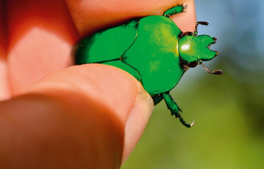 Bleskotki, bogatki, złotolitki… – takimi nazwami obdarzamy połyskliwe, chciałoby się powiedzieć: szlachetnie ubarwione owady, które w ciepłe słoneczne dni widujemy na liściach, na piaszczystej drodze, na kłodach czy ścianach starych wiejskich budynków. Najwięcej tej żywej biżuterii znajdziemy – poza motylami i ważkami – wśród błonkówek i chrząszczy. Pobłyskujące są także niektóre muchówki i pluskwiaki. Za połyskliwość owadów nie odpowiadają chemiczne barwniki (pigmenty), ale mikroskopijne półprzezroczyste struktury podobne do tych tworzących połyskliwą mieszankę barw na piórach niektórych ptaków. Materiałem, z którego zbudowane są te struktury, jest u ptaków białko – keratyna, a u owadów – organiczny polimer chityna.