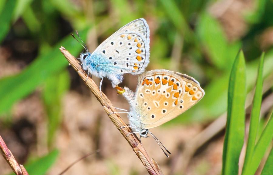 Uwodzicielskie odznaki (odblaski, kropki, oka, plamy na skrzydłach) zdarzają się u samic niektórych gatunków motyli dziennych. Może im bowiem zależeć na poligynii, czyli seksie z wieloma partnerami. Ale nie tylko o plemniki tutaj chodzi. Okazało się, że samiec w czasie kopulacji dokarmia samicę! Razem z plemnikami przekazuje jej porcję „wkładu ojcowskiego” – substancji odżywczych, które ona wchłania do krwiobiegu i przeznacza na produkcję jaj. Opiekuńczy gest samca poprzedzony jest obustronną wymianą sygnałów wzrokowych. U takich motyli jak mieniaki, modraszki czy perłowce odblaskowe plamy na skrzydłach pełnią uwodzicielską funkcję u obu płci. Partnerzy mogą nawzajem, na podstawie intensywności tych plam, oszacować wiek i witalność kandydata do związku. Na marginesie: ważnym elementem błysków jest ultrafiolet – dla nas kompletnie niewidoczny składnik barw.