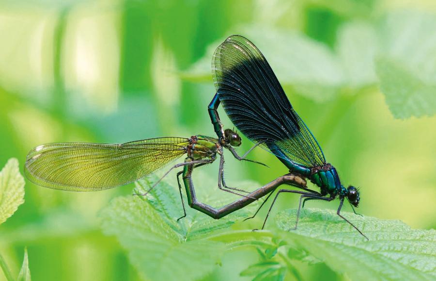 U ważek wszystko przebiega „normalnie”. Zalotne są samce. U wielu gatunków są one znacznie pyszniej ubarwione niż samice. Nasz letni pobyt nad rzeką urozmaicają pląsające nad wodą świtezianki – ważki o płynnych, powolnych, dostojnych ruchach. Te z metalicznie granatowym korpusem i skrzydłami to samce. W miejscach, gdzie w wodzie znajduje się mnóstwo wodorostów, mogą ich być chmary. Samiczki są zielonkawe i mniej rzucają się w oczy (także innym ważkom i drapieżnikom). Pląsy ważek to ciągła kłótnia o terytorium. Kępa wodorostów stanowi dla samic atrakcyjne miejsce umieszczenia jaj. Jeżeli w pobliżu wystaje z wody patyk, to rychło usiądzie na nim samiec i będzie odganiał nadlatujących co chwila uzurpatorów. Jeżeli będzie to samica, to samiec wykona przed nią zalotną akrobację, starając się ją nakłonić, aby przysiadła nieopodal. Wtedy chwyci ją cążkami wystającymi na końcu odwłoka za szyję – przednią część tułowia specjalnie wyprofilowaną na tę okoliczność. Ten chwyt spowoduje u samicy odruch podgięcia odwłoka i kontakt jej narządów płciowych z wtórnymi przydatkami płciowymi samca u podstawy jego odwłoka, zaopatrzonymi wcześniej w porcję plemników w akcie, który można nazwać samokopulacją. Następnie dochodzi u samca do energicznych ruchów odwłokiem do przodu i do tyłu, co powoduje przesuwanie znieruchomiałej samicy. Nie jest to jeszcze przekazywanie plemników, ale… czyszczenie samicy z plemników pozostałych po kopulacji z innym samcem. Samo przekazanie plemników nastąpi tuż przed rozłączeniem się pary. Na te wszystkie zabiegi samca samica musi się zgodzić. Ustalono, że ważnym czynnikiem wpływającym na jej decyzję jest intensywność niebieskiego barwnika (z grupy tzw. barwników żółciowych) na skrzydłach i korpusie samca, wzmocniona odblaskowymi, jubilerskimi właściwościami.