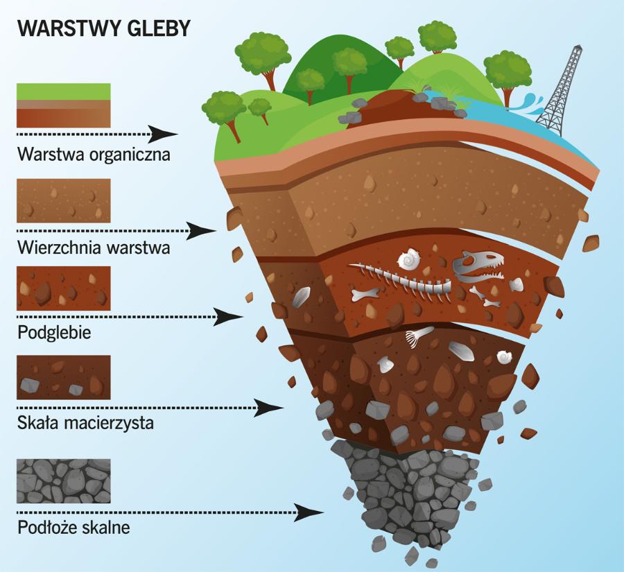 Podczas spaceru po lesie nasz wzrok chętnie spoczywa na zielonych liściach drzew, rudej kicie wiewiórki czy czerwonym kapeluszu muchomora. Rzadko jednak rozmyślamy nad tym, co kryje się pod dywanem z puszystego mchu lub warstwą jesiennych liści. Tymczasem gleby, czy to w lesie, czy w parku, na łące lub polu, są podstawą funkcjonowania ekosystemów lądowych. To w nich znajdują się martwe tkanki organizmów, które są poddawane recyklingowi i w postaci składników odżywczych trafiają do roślin. Proces ten pełni ważną funkcję w rolnictwie, gdyż jego sprawny przebieg zapewnia uzyskanie wysokich plonów przy jednoczesnym ograniczeniu ilości stosowanych nawozów sztucznych. Gleby odgrywają również znaczącą rolę w cyklu wody, ponieważ zaopatrują nas w wodę pitną. Wreszcie magazynują materię organiczną, co wpływa na regulację klimatu. Według najnowszych szacunków gromadzą więcej węgla niż rośliny i atmosfera razem wzięte! Niestety działalność człowieka powoduje uwalnianie zmagazynowanej w nich materii organicznej, która powraca do atmosfery w postaci dwutlenku węgla (CO2). I tak np. w trakcie przekształcania lasu w pola uprawne do powietrza trafia ok. 25% węgla uwięzionego w powierzchniowych 30 cm gleby. Straty te dokładają swoją cegiełkę do krążącego obecnie w atmosferze antropogenicznego CO2.