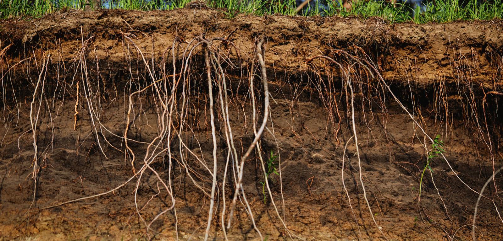 Nie tylko liście, ale również korzenie roślin bierze się pod uwagę w badaniach zdolności magazynowania węgla przez glebę. Dotyczy to w szczególności korzeni chłonnych, czyli bardzo cienkich włókien, przez które rośliny pobierają wodę i składniki mineralne. Korzenie te odnawiają się bardzo szybko. Gdy tylko zasoby w danej objętości gleby zostaną wyczerpane, znajdujące się tam korzenie obumierają, a zupełnie nowe powstają nieco dalej. Z powodu tak wysokiego wskaźnika odnowienia stanowią one istotny składnik ściółki. I tak np. 33% wyprodukowanej w ciągu roku ściółki w lasach pochodzi właśnie z obumierania korzeni o średnicy mniejszej niż 2 mm. Co więcej, badania chińskiego naukowca Tao Suna wykazały, że obumarłe korzenie chłonne rozkładają się znacznie wolniej niż martwe liście z tego samego gatunku drzewa. W ten sposób po 6 latach rozkładu mineralizacji ulega 77% masy ściółki liściowej w porównaniu do zaledwie 35% masy korzeni chłonnych! Tę odporność na rozkład można w dużej mierze wytłumaczyć wyjątkowo wysokimi poziomami taniny w korzeniach chłonnych roślin, a ta, jak wiemy, jest słabo metabolizowana przez organizmy żyjące w glebie.