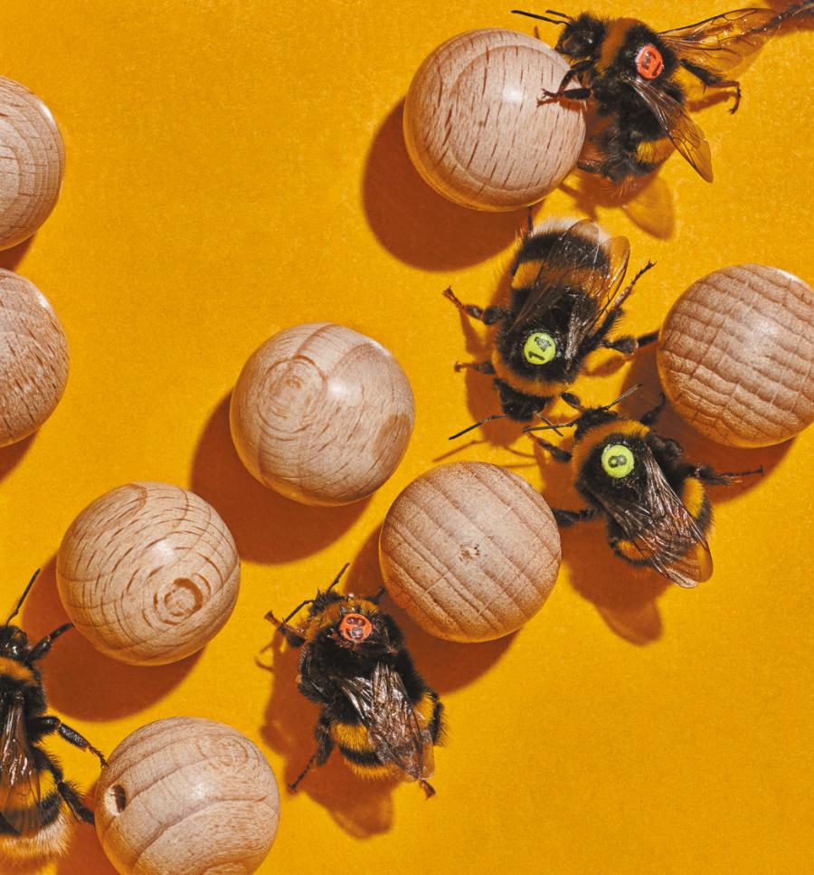 Inne badania wskazują, że pszczoły mogą odczuwać nie tylko optymizm, ale i radość. Kilka lat temu wyćwiczyliśmy trzmiele, by wtaczały maleńkie kulki do pola bramkowego, jeśli chciały otrzymać nagrodę w postaci nektaru – takie operowanie przedmiotami porównywalne jest z wrzucaniem monet do automatu. W trakcie tych eksperymentów zauważyliśmy, że niektóre owady toczyły kulki także wtedy, gdy nie oferowano nagrody. Podejrzewaliśmy, że jest to forma zabawy.