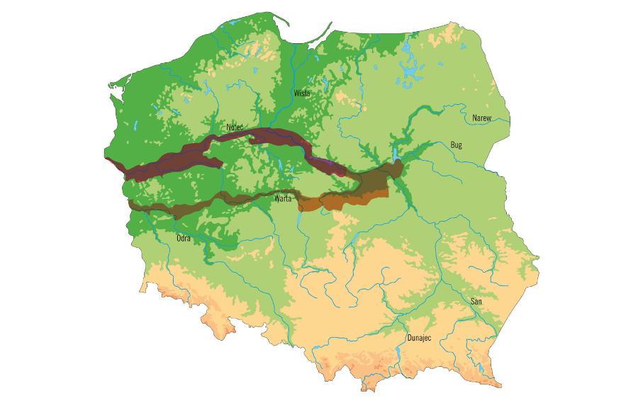 Kilkanaście tysięcy lat później nic nie zostało z tego eemskiego ciepła. Temperatury spadały i w Górach Skandynawskich narodził się kolejny lądolód. Długo nie docierał on na tereny dzisiejszej Polski, więc Wisła zapewne toczyła swoje wody bez większych przeszkód i przerw aż do momentu, gdy 25–30 tys. lat temu plejstocen znów dokręcił śrubę. Lądolód o grubości kilku kilometrów wkroczył na tereny północnej i centralnej Polski. Zajął dorzecze i dolinę dolnej Wisły. Około 20 tys. lat temu jego czoło sięgnęło okolic Płocka i Gostynina, zagradzając drogę rzece. Prowadzona przez nią woda skierowała się wtedy na zachód. Wycięła na przedpolu lądolodu szeroką na 15–20 km rynnę – Pradolinę Warszawsko-Berlińską. Popłynęły nią wody nie tylko Wisły, ale też wielu innych rzek, którym lądolód stanął na drodze.
