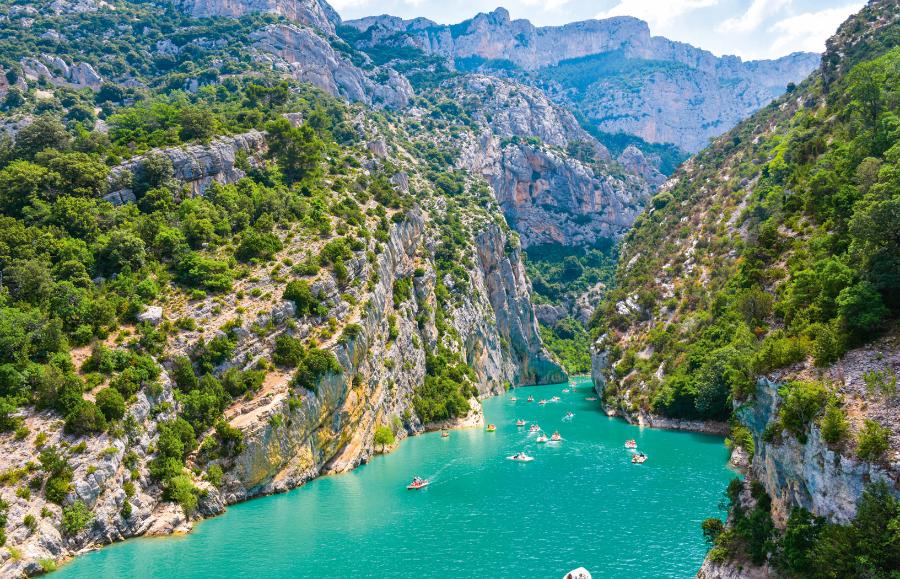 Nie trzeba jednak jechać na inne kontynenty, aby zerknąć do wnętrza naprawdę głębokiego kanionu. Wystarczy udać się do francuskiej Prowansji, gdzie płynie niewielka rzeka Verdon. Na odcinku liczącym ok. 25 km przecina ona wapienny masyw górski, tworząc gardziel o maksymalnej głębokości 700 m i minimalnej szerokości nieprzekraczającej 200 m. Turyści kochają to miejsce. Jednym wystarcza przejażdżka samochodem połączona z zaliczeniem wielu punktów widokowych, inni wędrują szlakami pieszymi poprowadzonymi w pobliżu półkilometrowej otchłani i przeznaczonymi raczej dla tych bez lęku wysokości. Kolejni wypożyczają kajaki, pontony i tratwy, by spłynąć rwącą rzeką przez kanion. Wreszcie są i tacy, którzy wspinają się po pionowych urwiskach. Wytyczono tu ponad tysiąc dróg wspinaczkowych. Szacunki mówią, że co roku pojawia się tu ok. 1 mln osób, a ich obecność bywa coraz uciążliwsza. Ostatnio kanion Verdon został zaliczony do dziesięciu atrakcji turystycznych Francji najbardziej zagrożonych turystyką masową.