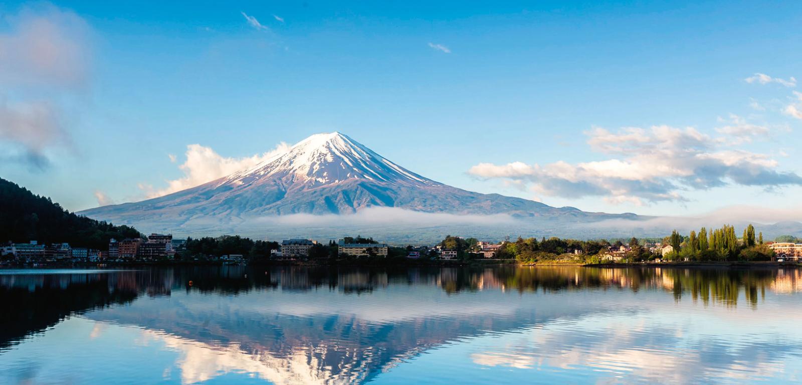 Wulkan Fudżi to najwyższa góra Japonii (3776 m n.p.m.). Jego wspaniały regularny stożek, którego górna część jesienią pokrywa się śniegiem, zamilkł na początku XVIII w. W ciągu kilku wcześniejszych stuleci Fudżi wybuchał średnio co 30–40 lat. Dziś natomiast stanowi cel pieszych wycieczek. Zimą na jego stokach działają wyciągi narciarskie.
