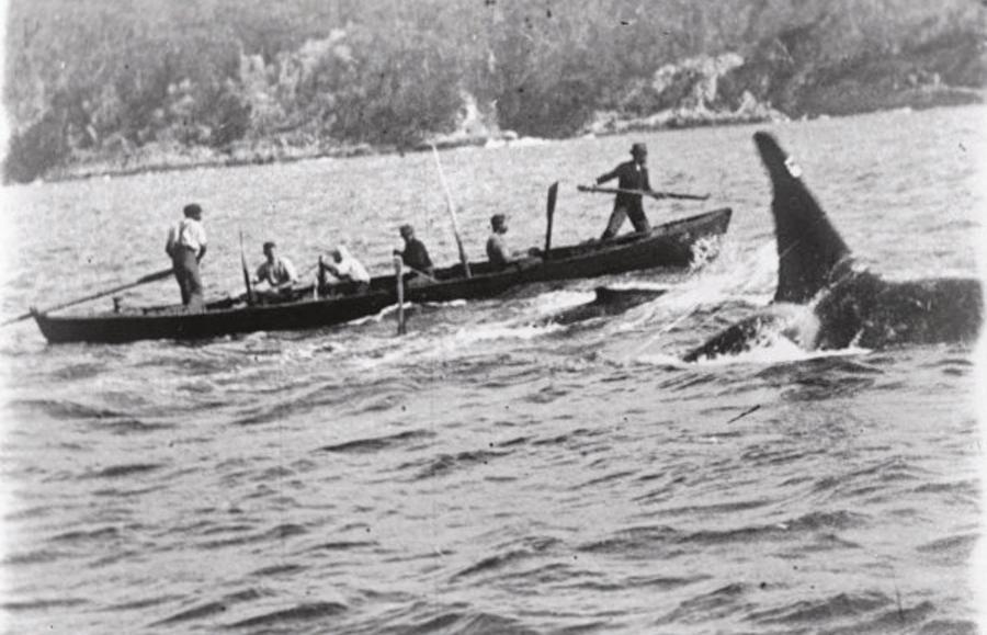 W przeszłości ludzie współpracowali także z orkami. Archiwalne zapisy pochodzą z Rosji (z Półwyspu Czukockiego) i z Australii (z zatoki Twofold). Orki stadem naganiały walenie i inne morskie zwierzęta ku powierzchni wody albo ku brzegowi i otaczały je, co ułatwiało ludziom polowania. Zachował się zapis takiej sytuacji z 1830 r. Kilka orek atakowało walenia z rzędu fiszbinowców. W tym czasie pozostałe aktywnie szukały wielorybników, po czym zwróciły ich uwagę uderzeniami o powierzchnię wody (nie opisano, co dokładnie robiły) i poprowadziły do ofiary. Wielorybnikami byli emigranci ze Szkocji i członkowie aborygeńskiego plemienia Yuin. Po zabiciu walenia ludzie pozwolili orkom pożywić się jego językiem, zanim wciągnęli ofiarę na pokład. Ta współpraca międzygatunkowa w zatoce Twofold trwała niemal wiek i zakończyła się w 1926 r. Za główną przyczynę podaje się celowe morderstwo dwóch orek przez ludzi, co doprowadziło do odejścia stada.