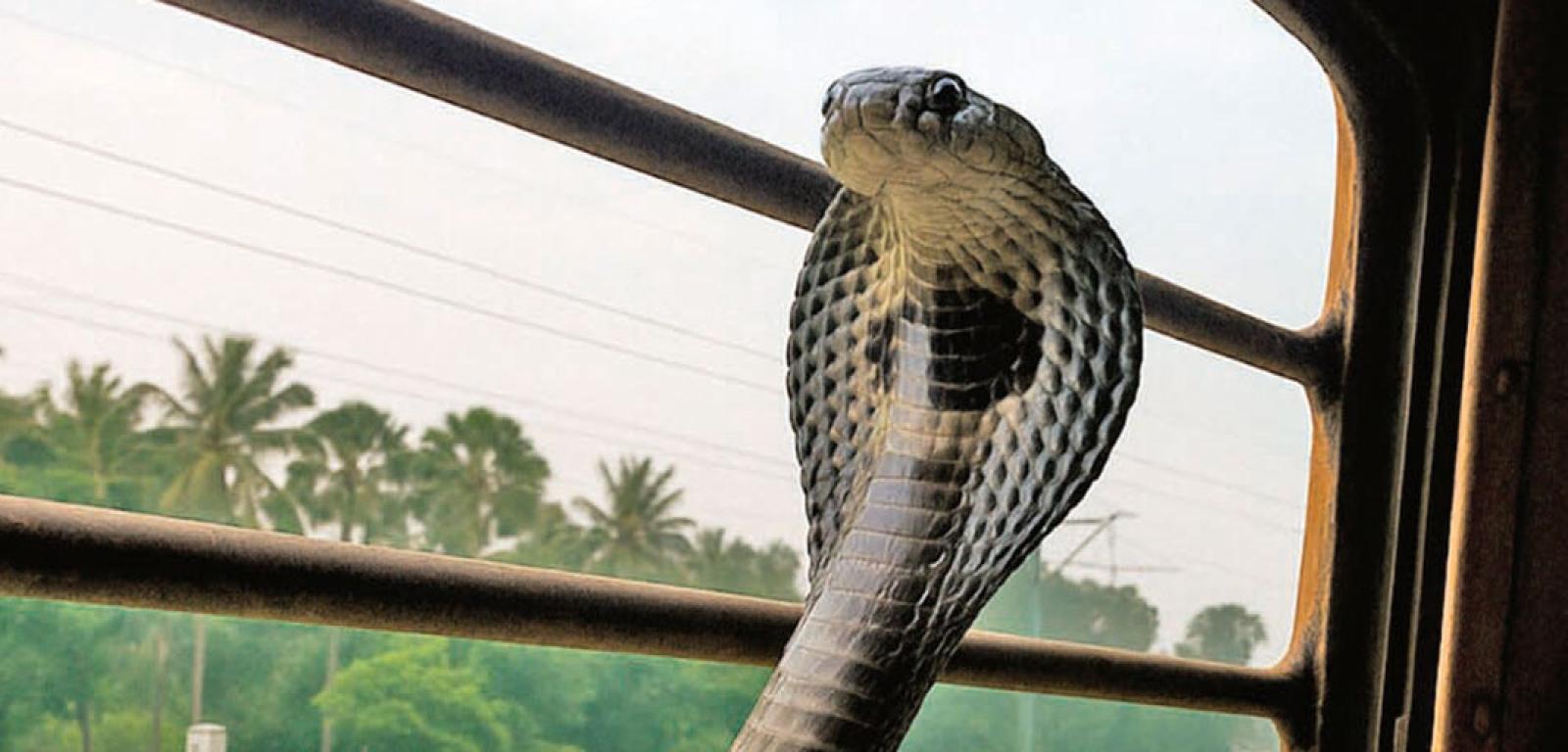 Kobra królewska to największy jadowity wąż na świecie. Jej ukąszenie może zabić człowieka w ciągu kwadransa. Osiąga ponad 5 m długości, a poza tym doskonale pływa i wspina się po drzewach. Zamieszkuje Półwysep Indochiński, Archipelag Malajski, południowe Chiny, a także Bangladesz i Indie. W tym ostatnim kraju występuje na wschodzie oraz w paśmie górskim o nazwie Ghaty Zachodnie, opadającym stromymi krawędziami w stronę Oceanu Indyjskiego. Właśnie kobry królewskie z tego ostatniego regionu zaczęły ostatnio być widywane w pociągach.