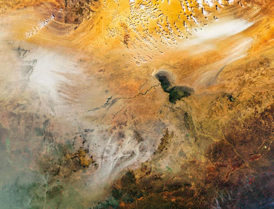 Sahara jest okradana przez wiatr z piasku od kilku tysięcy lat, czyli od czasu, gdy północna Afryka utraciła swoją zieloną, sawannową szatę, odsłaniając nagie skalne podłoże. Stało się tak na skutek ucieczki deszczu, który wcześniej przybywał tu z monsunami od strony dwóch oceanów, Atlantyckiego i Indyjskiego, ale potem wycofał się na południe. Wraz z nim zniknął sawannowy świat roślin i zwierząt oraz krajobraz z licznymi strumieniami, rzekami i jeziorami. Największe z nich wypełniało rozległe obniżenie tektoniczne zwane Basenem Czadu, znajdujące się na terenie trzech państw: Czadu, Nigru i częściowo Nigerii. Ów akwen, choć miał powierzchnię większą od terytorium Polski i maksymalną głębokość blisko 200 m, wysechł niemal w całości przed ok. 5 tys. lat. Pozostawił po sobie współczesne jezioro Czad, a także grube warstwy osadów jeziornych wzbogaconych pancerzykami jednokomórkowych okrzemek, które niegdyś w nim żyły. Dziś te osady są masowo porywane przez wiatry i unoszone za ocean.