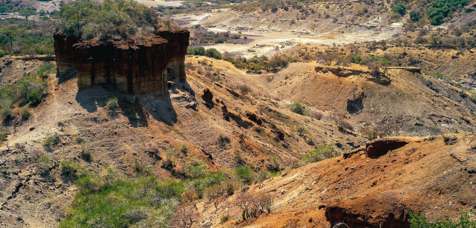 Wąwóz Olduvai w północnej Tanzanii słynie z odkryć wczesnych przedstawicieli Homo i uważany jest za jedną z kolebek ludzkości. Najstarsze odnalezione tu szczątki homininów liczą ok. 2 mln lat. Głęboka rysa w ziemi ciągnie się na długości mniej więcej 50 km przez równinę Serengeti, uchodząc ostatecznie do Wielkiego Rowu Afrykańskiego – gigantycznego obniżenia tektonicznego, które przecina z północy na południe wschodnią część Czarnego Lądu. Dziś dno wąwozu jest suche i wyprażone przez słońce, ale kiedyś migotało tu spore jezioro, a wokół tryskały niezliczone źródła.