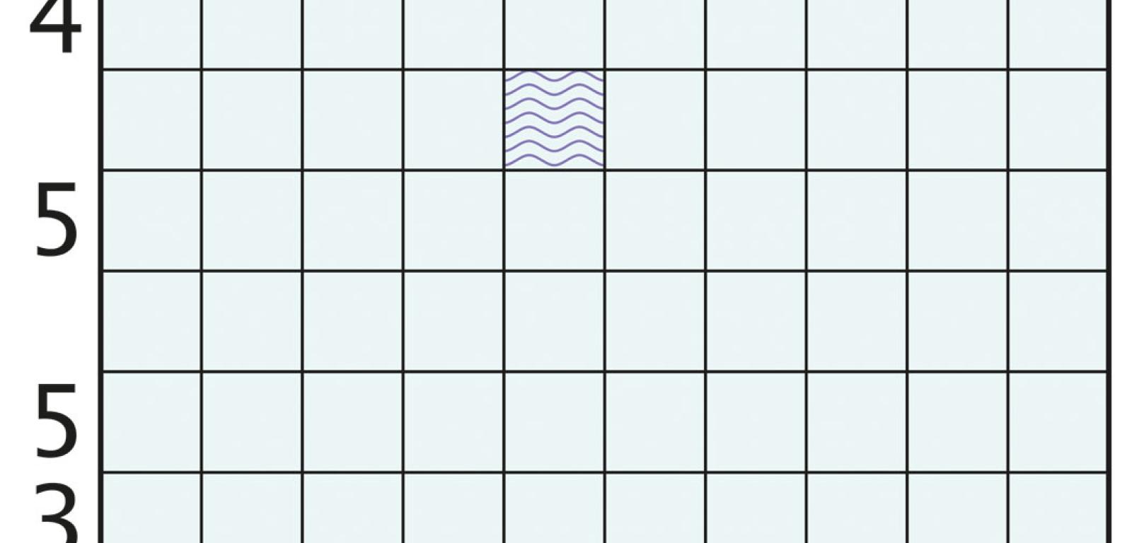 Większą niż w tradycyjnej bitwie morskiej flotę (5-masztowiec, dwa 4-masztowce, trzy 3-masztowce, cztery 2-masztowce i pięć 1-masztowców) należy rozmieścić na tradycyjnym akwenie (10 × 10) tak, aby żadne dwa okręty ze sobą nie sąsiadowały, czyli na polach stykających się – nawet tylko rogiem – nie może być dwóch jednostek. Liczby przy brzegu diagramu oznaczają, ile pól w danym wierszu lub kolumnie powinny zająć okręty. Na dobry początek ujawniony jest fragment jednej jednostki (śródokręcie) oraz dwa wodne pola (fale), których okręty nie mogą zająć.