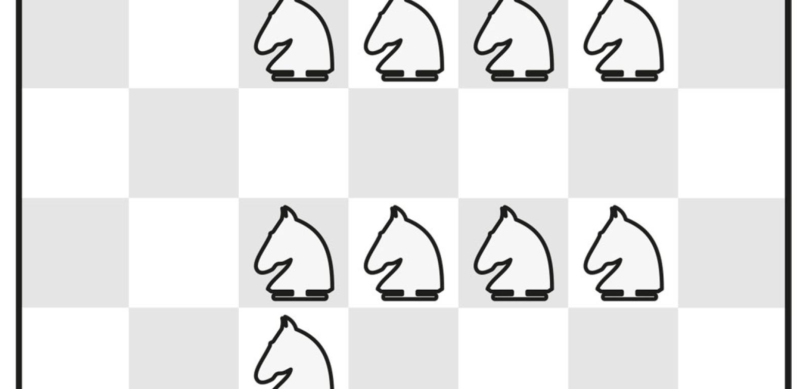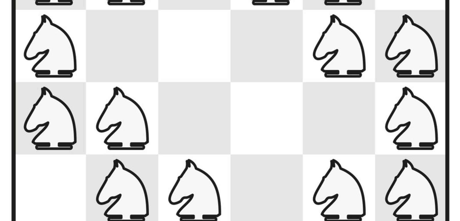 2. Na szachownicy 6x6 można ustawić najwięcej 20 skoczków tak, aby każdy atakował dwa inne. Przykład na rys. 3.