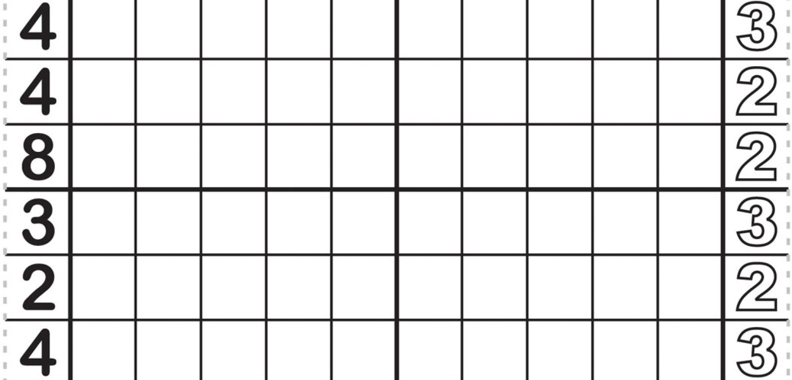 Kluczem do zaczernienia właściwych kratek są cyfry. Każda umieszczona z lewej strony i u góry diagramu wskazuje, z ilu kratek składa się najdłuższy ciągły szereg zaczernionych kratek w danym wierszu lub kolumnie; natomiast każda cyfra z prawej strony i u dołu określa liczbę kratek tworzących najdłuższy biały, czyli niezaczerniony, szereg kratek (w tym samym rzędzie może być więcej niż jeden najdłuższy szereg).