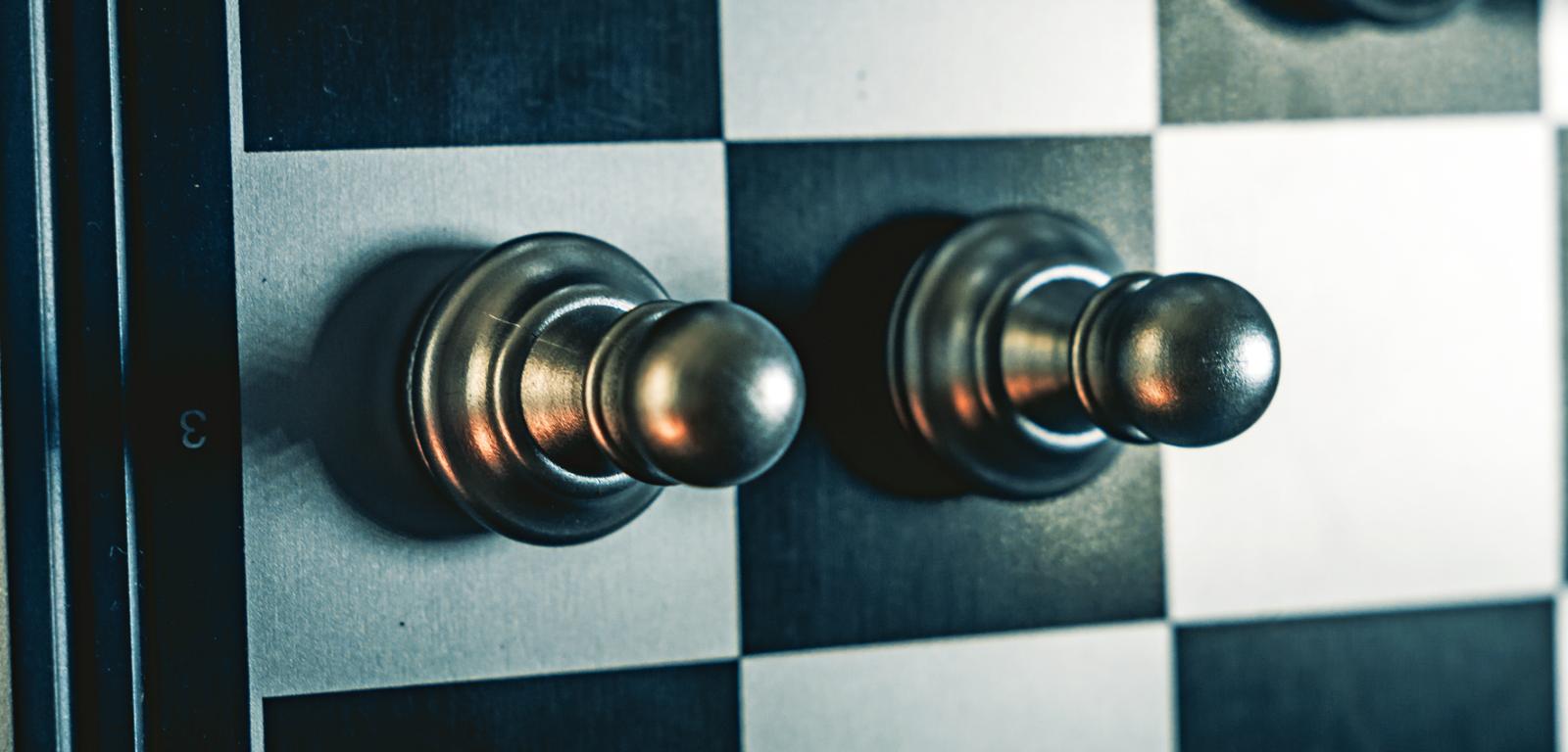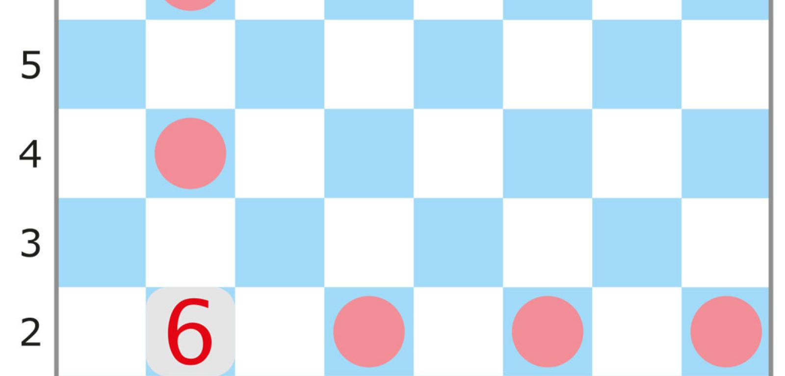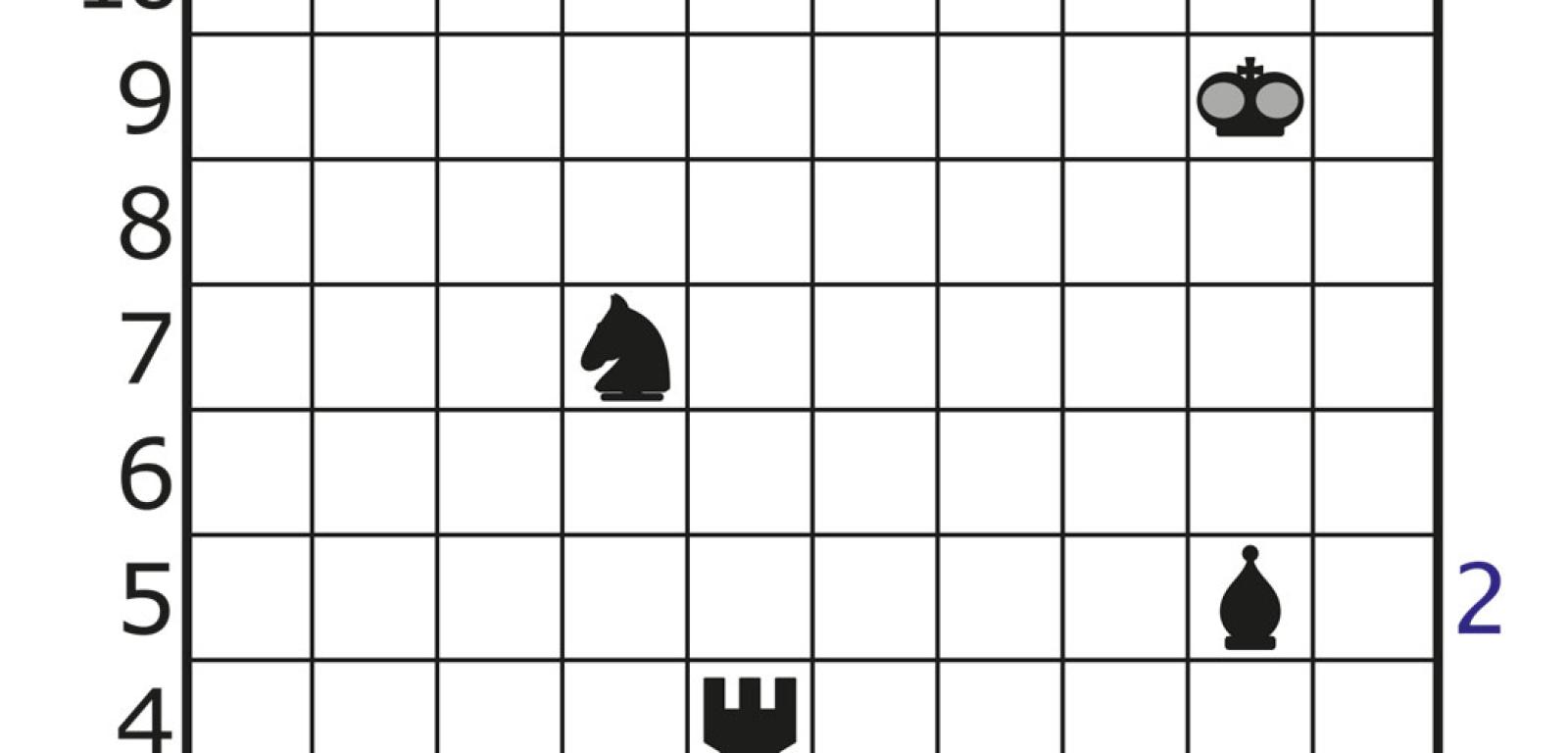 Na tej samej imprezie debiutowało podobne zadanie, które także można przenieść na szachownicę, a w konkretnym przypadku wystarczy nieco zmodyfikować sytuację z rys. 1: usuwamy siedem króli z cyframi, a pięć pozostałych zastępujemy wieżami, nie zmieniając cyfr (rys. 2). Teraz także chodzi o wskazanie pozycji pionków – w tym przypadku nie wiadomo, ilu – z których każdy atakowany jest przez co najmniej jedną wieżę. Liczba na wieży oznacza, ile pionków jest przez nią atakowanych. Należy jednak uwzględnić drobne odstępstwo od reguł szachowych: wieża atakuje każdy pionek stojący w rzędach (wierszu i kolumnie), na których przecięciu się znajduje, a więc także taki, który jest zasłonięty przez inny pionek. Ponadto obowiązuje dodatkowy warunek: musi być zachowany dystans, czyli żadne dwie bierki – wieża i pionek lub dwa pionki – nie mogą znajdować się na sąsiednich polach, także stykających się tylko rogiem. W oryginale wieże są latarniami morskimi, a pionki oświetlanymi przez nie statkami zakotwiczonymi na polach diagramu-akwenu.