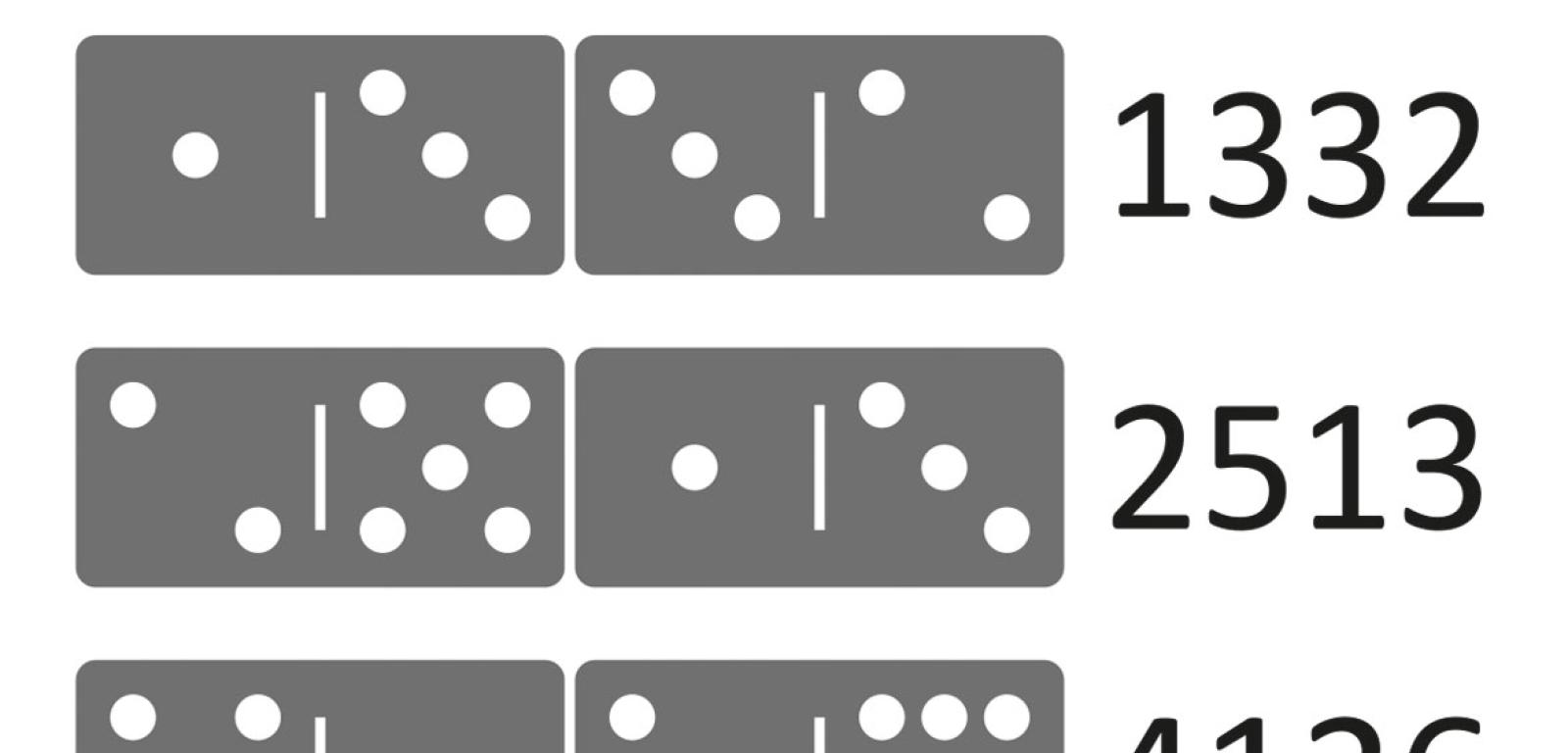 Ponieważ liczby oczek na połówkach kamieni odpowiadają cyfrom, więc z kamieni traktowanych jak pary cyfr można składać liczby. Czy uda się ułożyć każdą? Wydaje się oczywiste, że nie, bo brakuje cyfr 7, 8, 9, a ponadto parzystość kamieni narzuca tworzenie liczb złożonych z parzystej liczby cyfr. Sprawa nie jest jednak tak jednoznaczna, wiąże się bowiem z kwestiami umownymi.