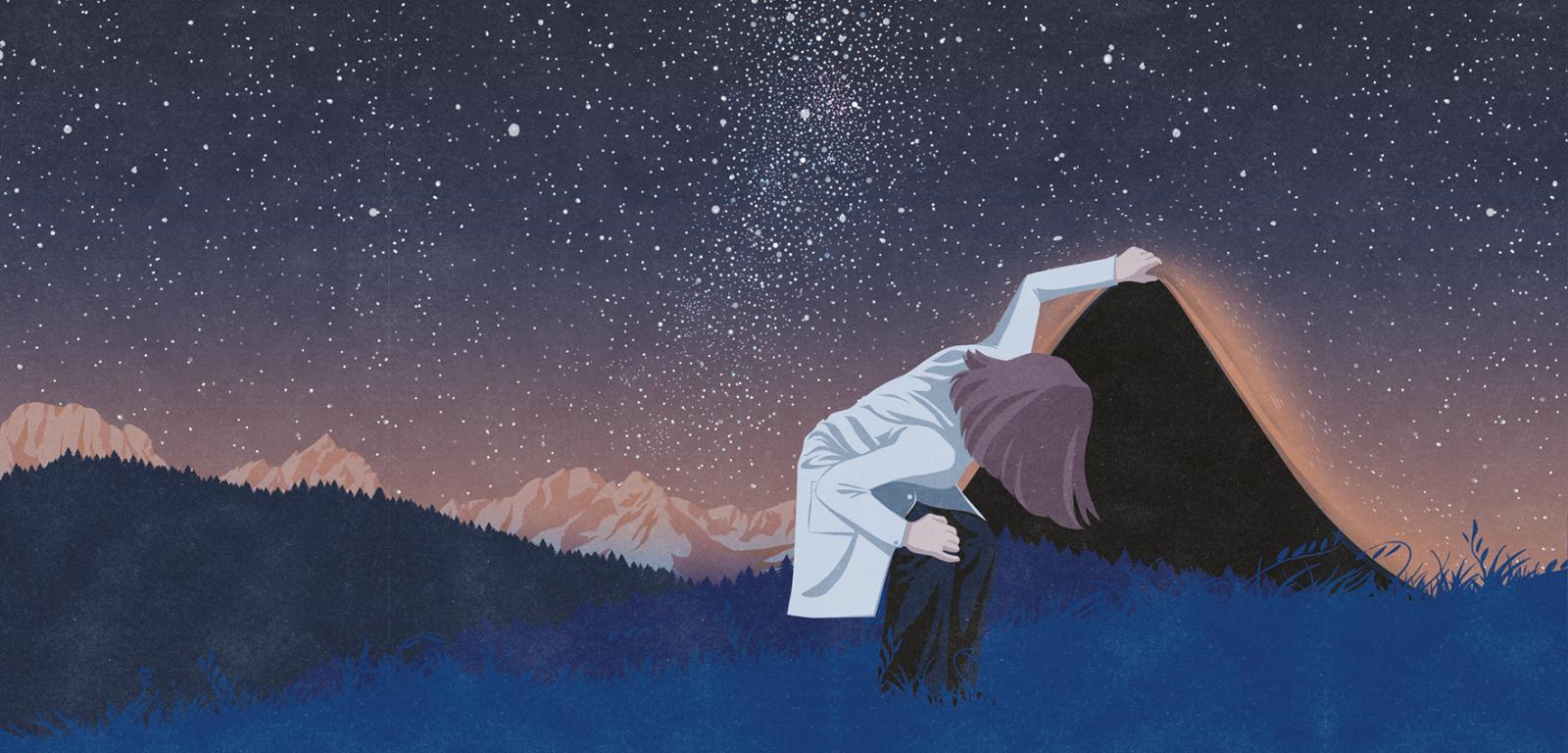 Natalie Paquette, fizyczka teoretyczka z University of Washington, godzinami rozmyśla, jak stworzyć dodatkowy wymiar. Najpierw w każdym punkcie czasu i przestrzeni umieszczamy okręgi, zwinięty wymiar, zapętlający się na sobie. Następnie kurczymy te okręgi, aby stawały się coraz mniejsze i mniejsze, zaciskając pętle do chwili, kiedy nastąpi intrygująca transformacja: wymiar nie wydaje się już mały, ale wręcz przeciwnie, olbrzymi; coś, co wyglądało na małe i bliskie, w istocie jest wielkie i dalekie.