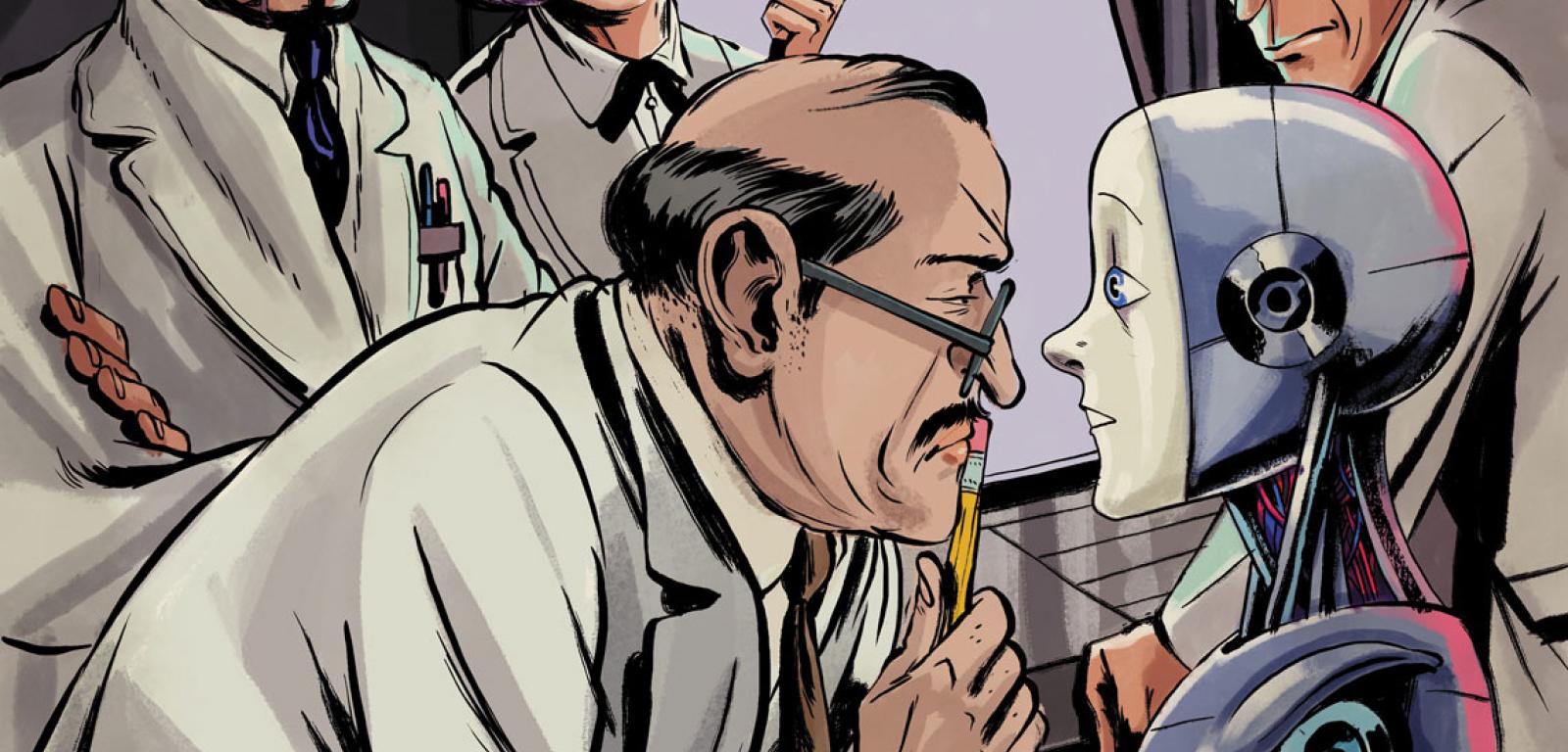 W 1950 roku Alan Turing zaprojektował eksperyment myślowy, który został uznany za test inteligencji maszyn. Sam autor nazywał go „grą imitacyjną”, ale powszechnie jest on znany jako test Turinga. Uprzedzając powstanie chatbotów, czyli programów udających ludzi, Turing rozważał sytuację, w której maszyna spróbuje przekonać rozmówcę, że jest człowiekiem, wypowiadając się na temat poezji lub celowo popełniając błędy arytmetyczne. Dziś test Turinga jest często postrzegany jako Rubikon wyznaczający początek ery maszyn.