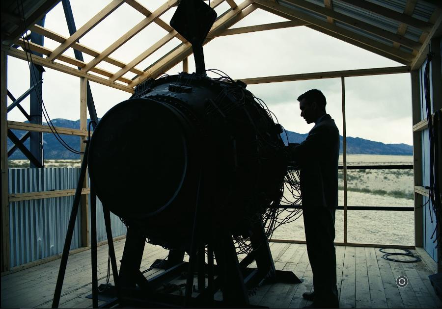 Ciężarem właściwym przewyższa nawet izotopy uranu (muzyka Ludwiga Göranssona smuci w tle bez ustanku). Widzom nie jest jednak dane odczuć, że w tej opowieści idzie o największy w dotychczasowych dziejach projekt inżynieryjny, o bezprecedensowe zderzenie najwybitniejszych umysłów świata. Na ekranie pozostaje jakby niedopowiedziana, niedoszacowana nawet apokaliptyczna moc bomby. Tej samej, której skutki działania reportażysta John Hersey opisywał niegdyś w książce „Hiroszima”: „Pan Tanimoto zauważył na mierzei około dwudziestu mężczyzn i kobiet. Dopłynął łodzią do brzegu i namawiał ich, aby wsiadali. Nie ruszali się, a on zdał sobie sprawę, że są zbyt osłabieni, by podnieść się samodzielnie. Pochylił się i chwycił kobietę za ręce, ale jej skóra zsunęła się w ogromnych kawałkach przypominających rękawiczki. […] Po drugiej stronie, na wyższej łasze, wyciągnął śliskie ciała i wyniósł je w górę zbocza, z dala od fali. Musiał świadomie powtarzać sobie w myślach: To są istoty ludzkie”.