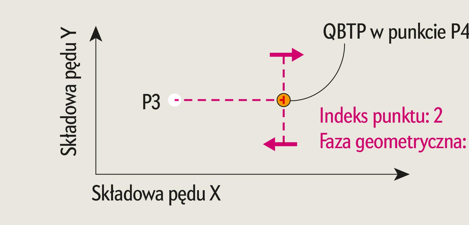 W prawdziwym grafenie interakcje między elektronami utrudniają badanie QBTP, ale w naszym układzie punkty te stały się dostępne dzięki jednej dziwnej sztuczce. Tak naprawdę nie jest ona aż tak dziwna ani nawet nie jest to żadna sztuczka. Udało nam się opracować konkretną metodę badania QBTP. Okazuje się, że jeśli kondensat wprawimy go w ruch jeszcze przed załadowaniem go do sieci optycznej, możemy uzyskać dostęp do QBTP i zbadać go tą samą metodą, której użyliśmy do zbadania punktu Diraca. Na wykresie przestrzeni pędów możemy wyobrazić sobie nowe punkty P3 i P4, gdzie P3 jest arbitralnym punktem początkowym w drugim paśmie wzbudzonym, a QBTP leży w P4. Nasze pomiary wykazały, że jeśli przesuniemy BEC z P3 bezpośrednio przez P4 i obrócimy go pod różnymi kątami, tak jak zrobiliśmy to z punktem Diraca, stan kwantowy kondensatu owinie się dokładnie dwa razy wokół QBTP. Wynik ten oznacza, że stan kwantowy BEC przyjął fazę geometryczną wynoszącą dokładnie 2p. Odpowiednio, zamiast indeksu punktu względem krzywej równemu 1, jak w przypadku punktu Diraca, odkryliśmy, że QBTP ma indeks punktu wynoszący 2, co oznacza, że stan musi obrócić się wokół punktu w przestrzeni pędów dokładnie dwa razy, zanim powróci do stanu kwantowego, z którego startował.