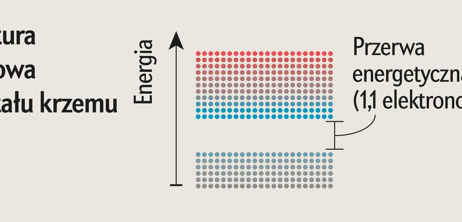 Na przykład wykres struktury pasmowej kryształu krzemu, powszechnego materiału używanego do produkcji dachowych ogniw słonecznych, pokazuje zakazany zakres energii – znany również jako przerwa energetyczna – o szerokości 1,1 elektronowolta. Jeśli elektrony są w stanie przeskakiwać ze stanów o energiach poniżej tej przerwy do stanów o energiach powyżej, mogą przepływać przez kryształ. Na szczęście dla ludzkości, przerwa energetyczna tego obficie występującego materiału jest mniejsza od energii fal występujących w świetle słonecznym. Gdy kryształ krzemu pochłania światło słoneczne, elektrony zaczynają przez niego przepływać – umożliwiając panelom słonecznym przekształcanie światła w użyteczną energię elektryczną.