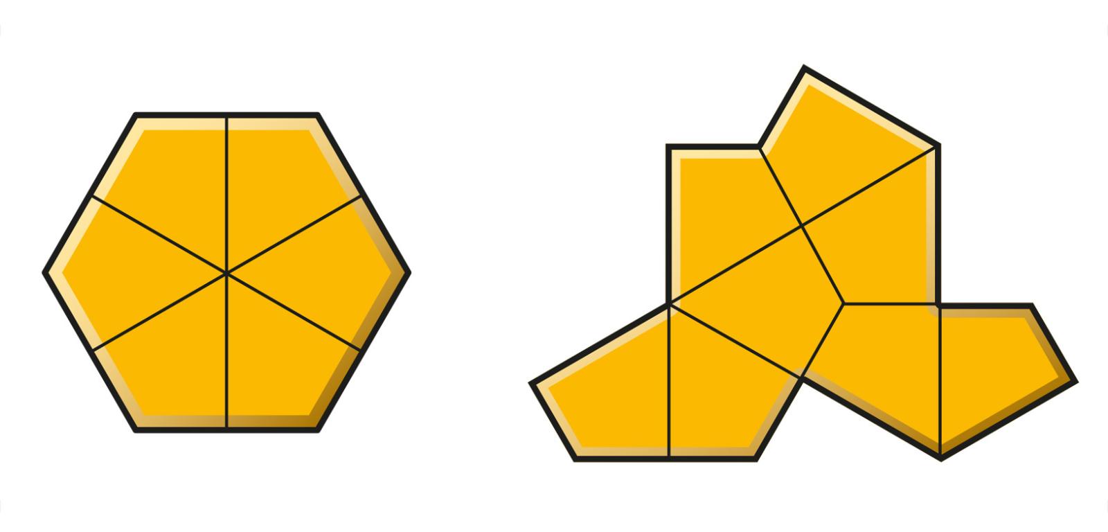 Próbowaliśmy ze Smithem zrozumieć funkcję kapelusza. Jest on tzw. poliformą, czyli kształtem złożonym z kopii jakiegoś prostego elementu jednostkowego. Na przykład elementy w grze Tetris składają się z czterech połączonych kwadratów. Natomiast kapelusz składa się z ośmiu latawców. Nie są one takie, jak latawce Penrose’a; Smith utworzył każdy, dzieląc foremny sześciokąt na sześć równych części liniami łączącymi środki przeciwległych boków. Wiedział o moim programie do obliczania liczb Heescha dla polimin (połączone kwadraty), poliheksów (połączone sześciokąty foremne) i poliamondów (połączone trójkąty równoboczne) i zastanawiał się, czy można go zaadaptować do „polideltoidów”. Na szczęście opracowałem też program dla deltoidów, czyli latawców (z pomocą Avy Pun, studentki University of Waterloo).