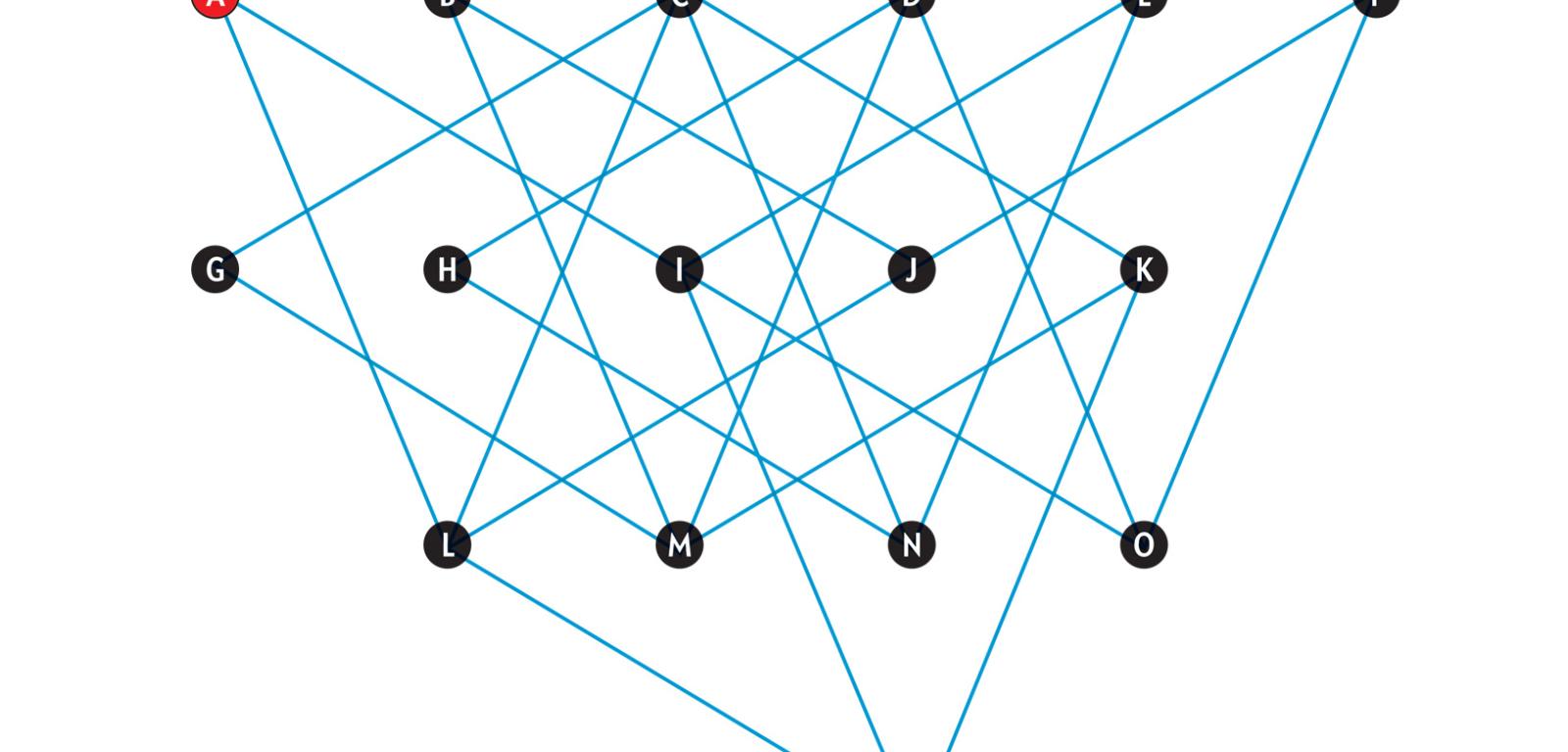 Komiwojażer mieszkający w mieście A chce w ciągu tygodnia odwiedzić wszystkie miasta od B do P (niekoniecznie w kolejności alfabetycznej) i na koniec wrócić do A.